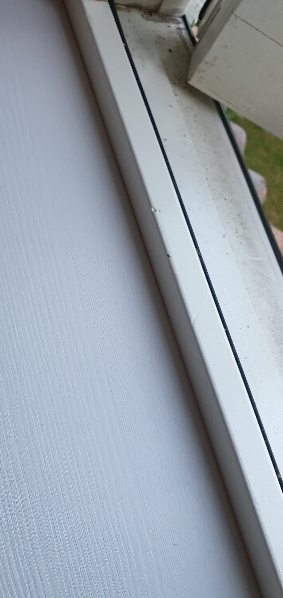 Sista bilden alltså uppifrån, brädan mot karmen, så det är den springan (ser ev ut som mer än 1 mm pga skugga men det är bara knappt så jag får in en nagel på största glipan)
