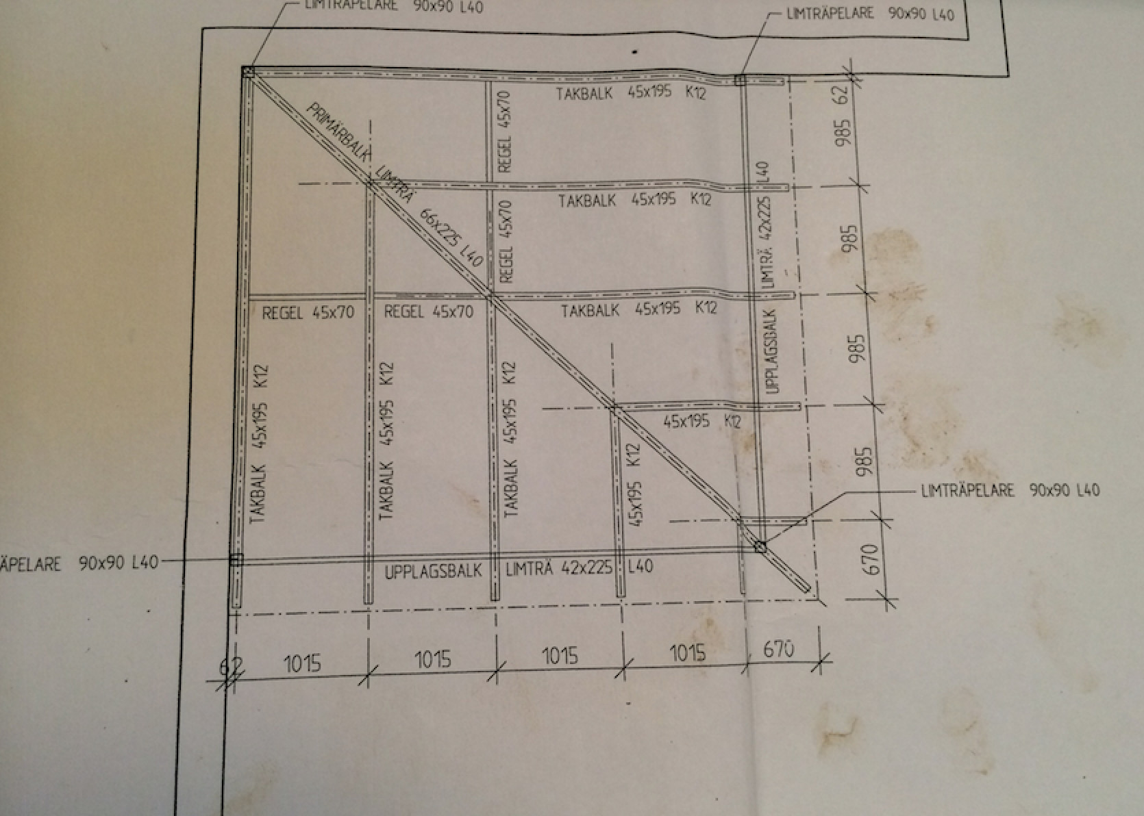 Hej! Har ett uterum enligt denna ritning med kanalplasttak. Tänkte issolera taket med 25cm isolering och lägga ett riktigt papptak. Min undran är vilken dimension Primärbalken ska ha?