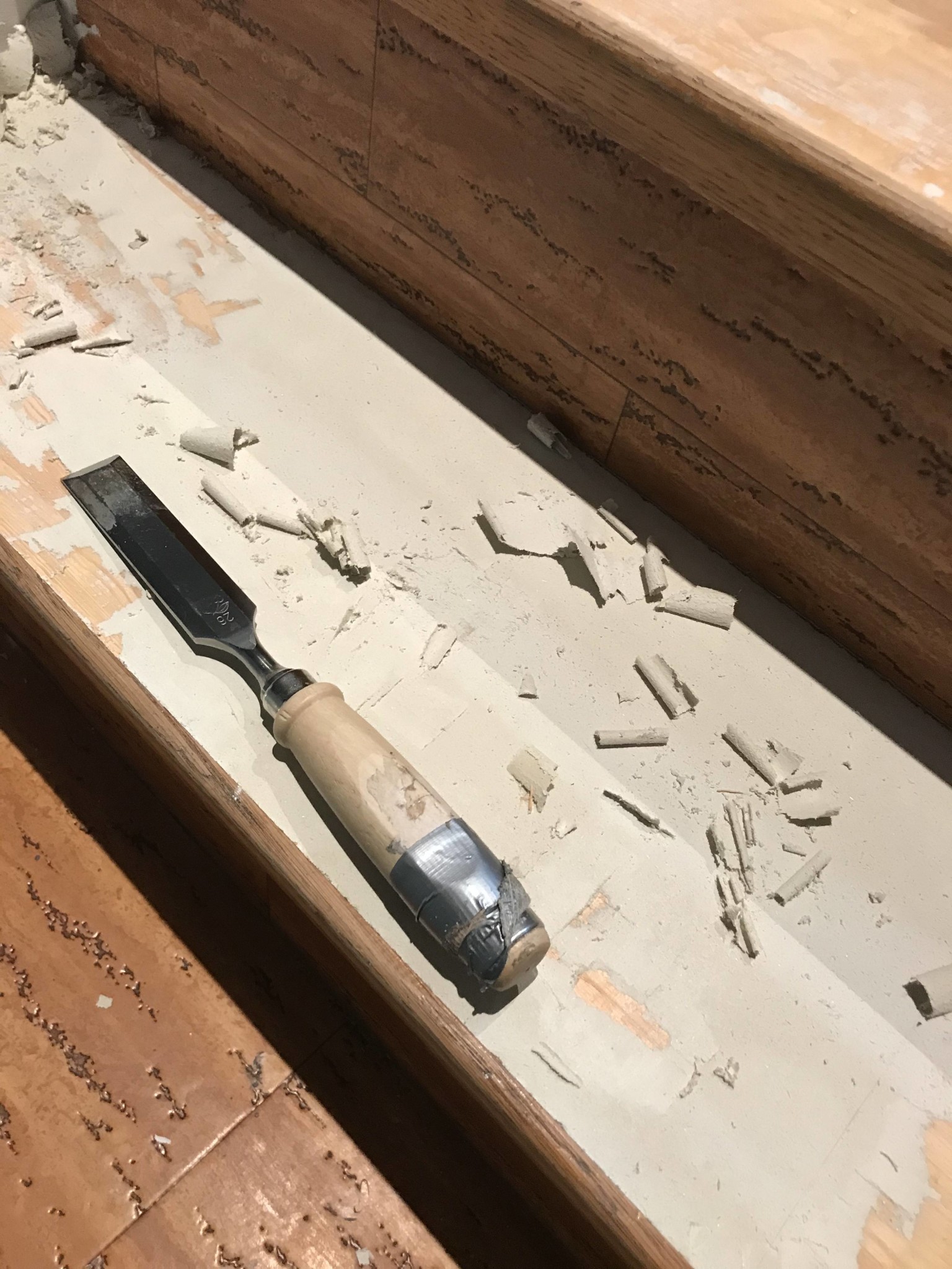 Håller på att avlägsna en linoleummatta från trappan. Inlagd ca 1976. Hur stor är asbestrisken? Kanske någon kunnig kan avgöra endast utifrån bifogat foto. [bild]