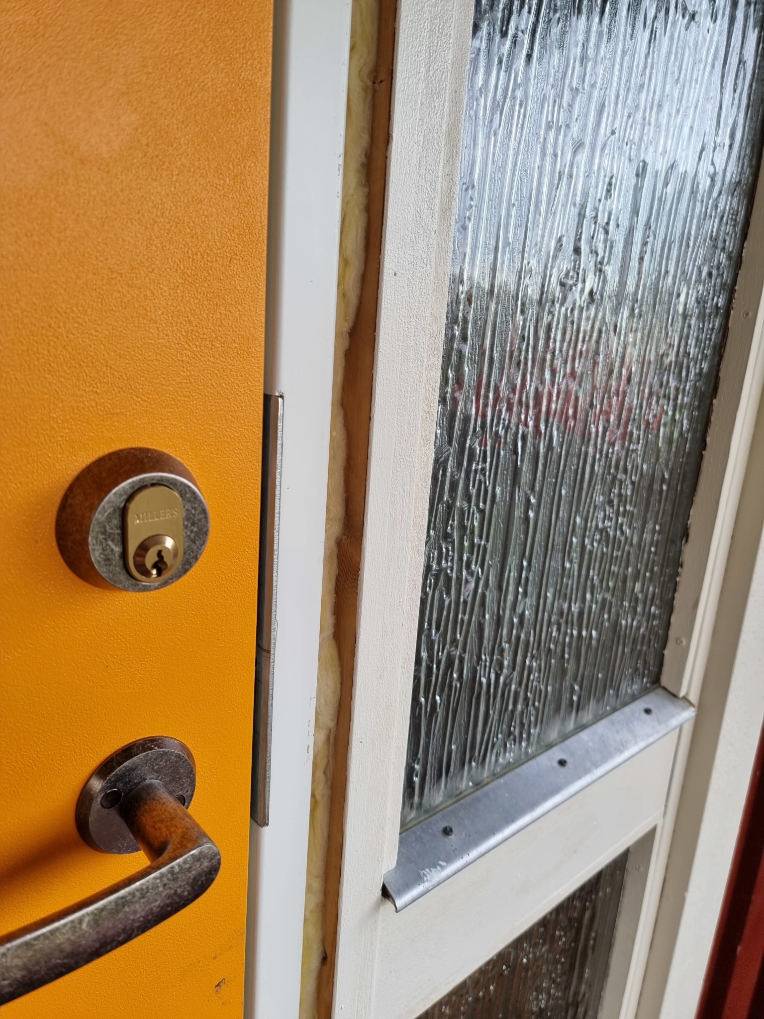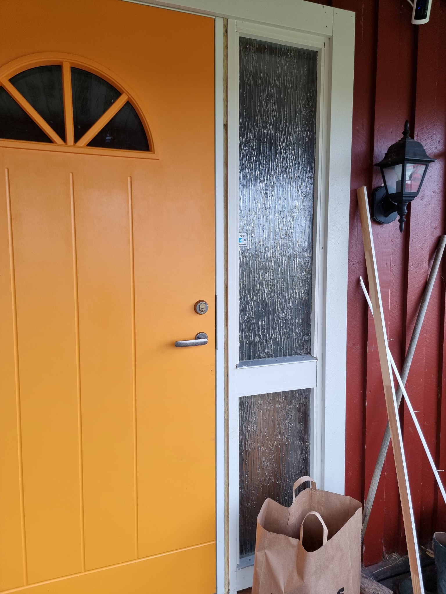 Vi la nyss in en ny dörr. Vi ville behålla sidoljuset som tillhörde dörren tidigare och tyvärr lutade den väääldigt mycket "utåt".