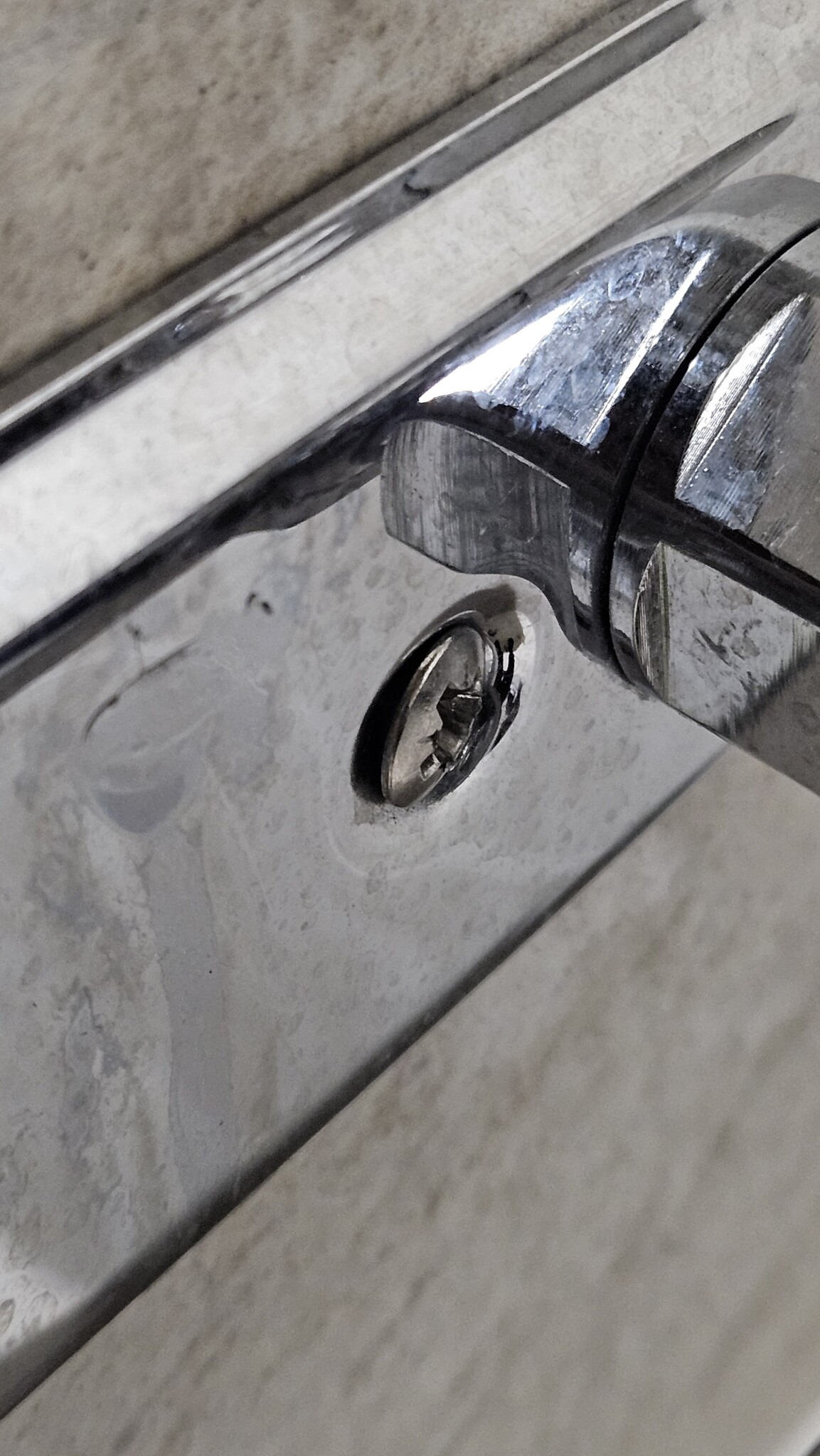 Följdfundering: när jag synar brickan bakom blandaren ser jag att en av skruvarna är monterad lite snett. Spontant tänker jag att det är en riskfaktor för att vatten lättare kan tänkas glida in bakom skruven. Utgår från att rörmokaren fyllt hålet med silikon, men faktumet att den är snedmonterad gör att jag blir lite orolig över vad det beror på och huruvida nånting gått fel i själva monteringen.