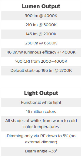 Spec på GU10-spottarna från Philips Hue.