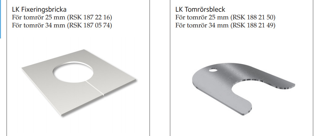 Håller på att dra ut 25mm Rör i RÖR. På LK anvisning har d e två olika fixeringar för genomföringar i reglar. Dels en plastbricka utan direkt fäste. Samt ett fixeringsbleck i metall.