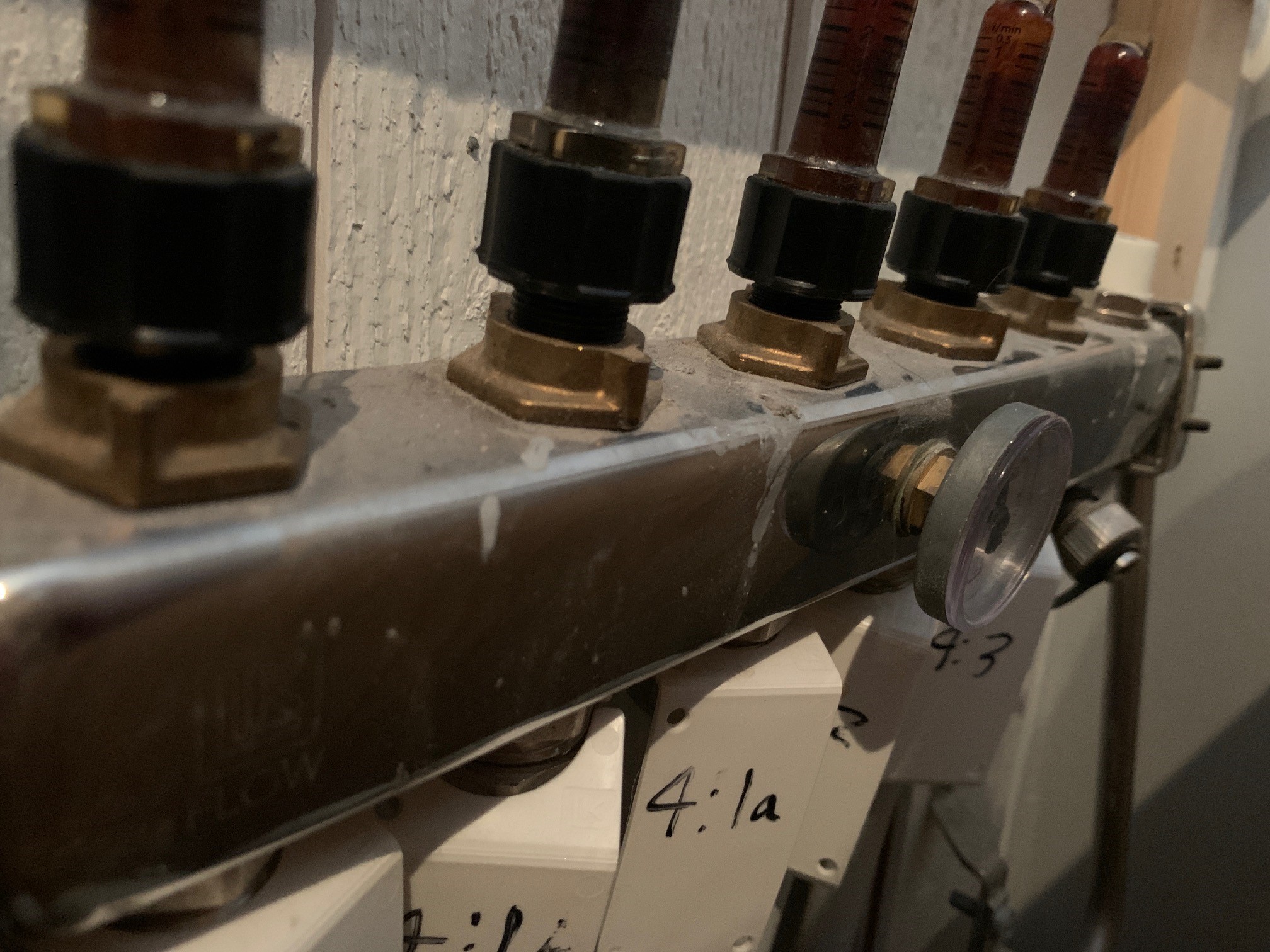 Vi har som test skruvat ner alla strypare/ventiler helt (stängt dom) på fördelaren i källaren för att försöka strypa värmen ut i källarplanet och få upp värmen på entréplanet men vi får fortfarande inte upp önskvärd temperatur.