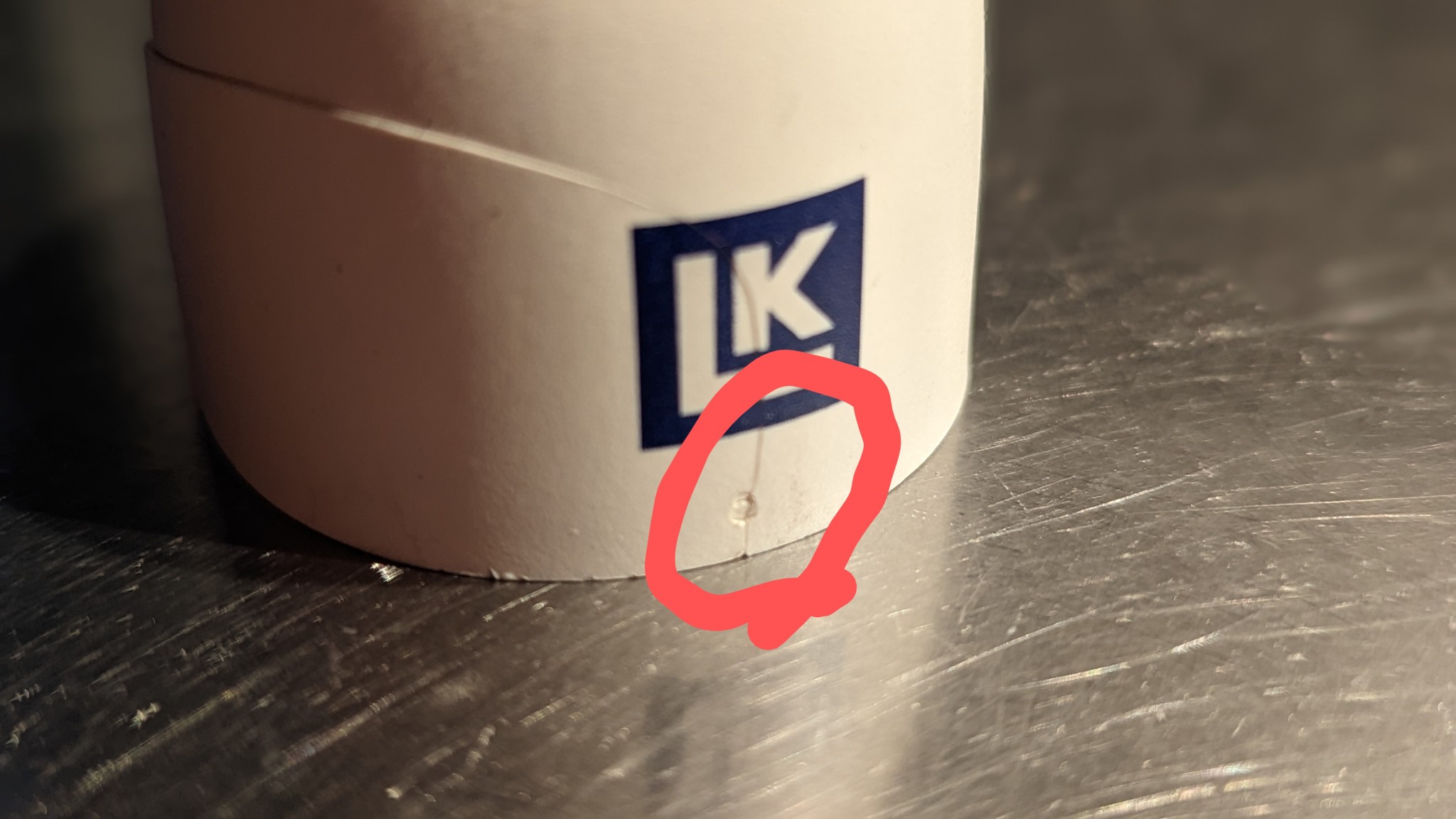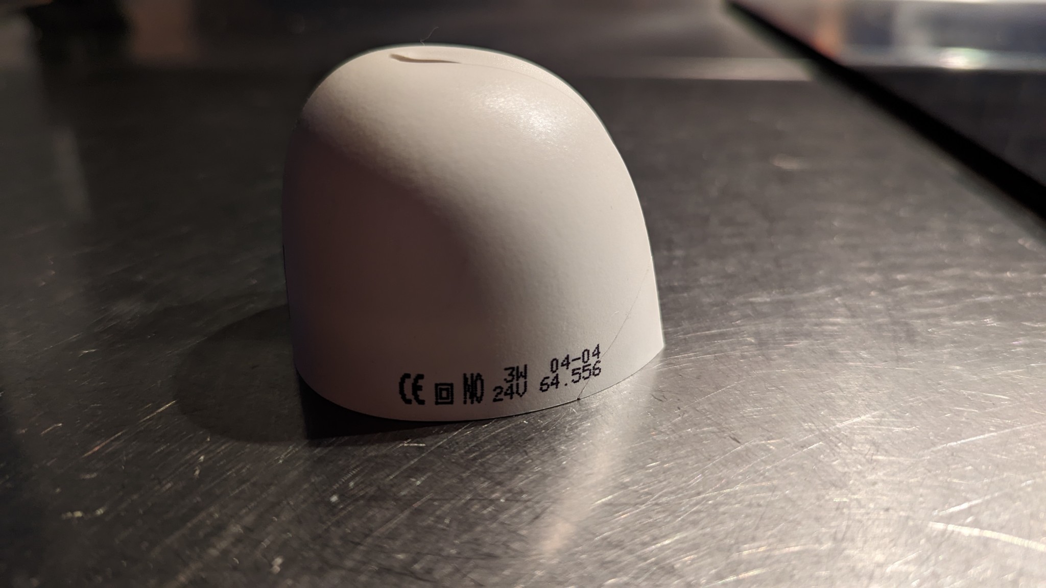 Lägger in några bilder hur de ser ut. I tillverkningen gissar jag att gjutverktyget gjort en liten fördjupning i plasten. Alla huvarna börjar spricka i den gropen, se bild.