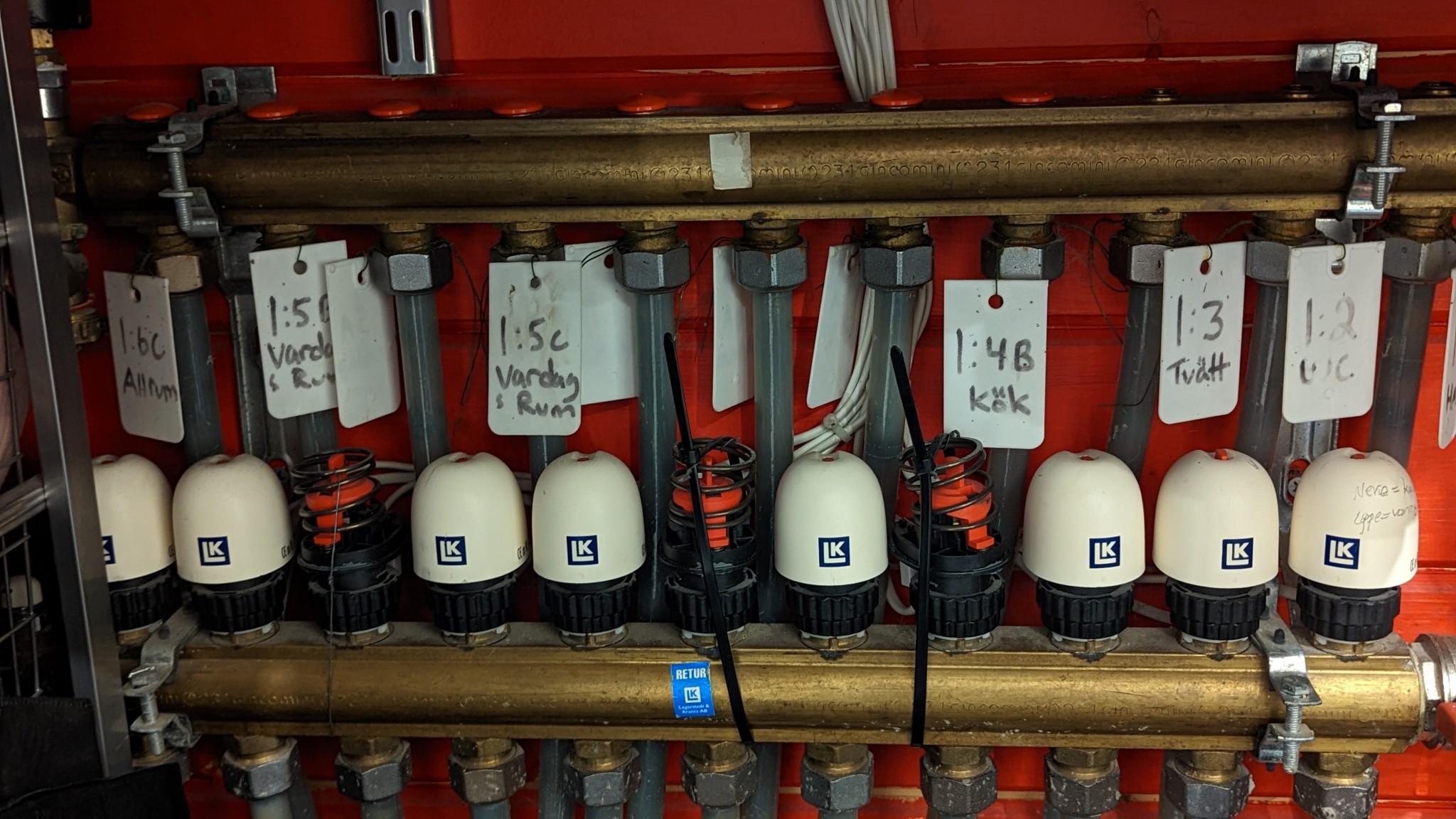 Jag hade perfekt värme tills ställdonen började "poppa upp" och då blev de slingorna för varma så att termostaten blev "lurad" och stängde ned övriga slingor, har ungefär framledningstemperatur på ca 28-30 grader vid 0 grader ute