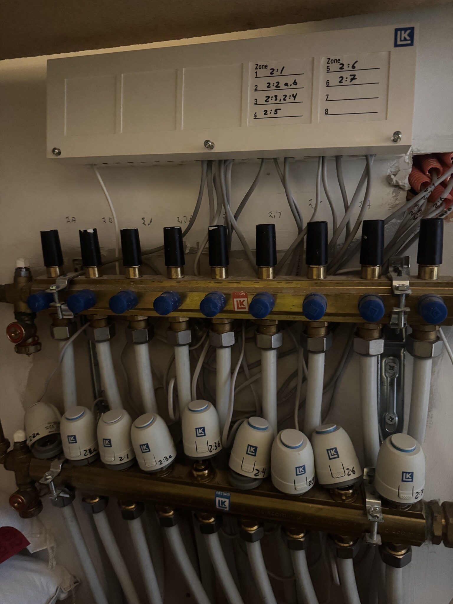 Har LK vattenburen golvvärme och nu märkte vi att golvvärmen är inte lika varma i alla rum. Vissa rum har bra temp i golvet och vissa är kalla. Alla termostater är på max. Vi har inställt 20 grader på frånluftsvärmepumpen. Hur löser jag detta? Har provat att lossa på de vita donen och tryckt ner piggarna ett par gånger och satt tillbaka dem, men utan resultat. Nu har jag tagit bort samtliga och ska se om alla golven blir varma. Om detta inte hjälper, hur går jag vidare?