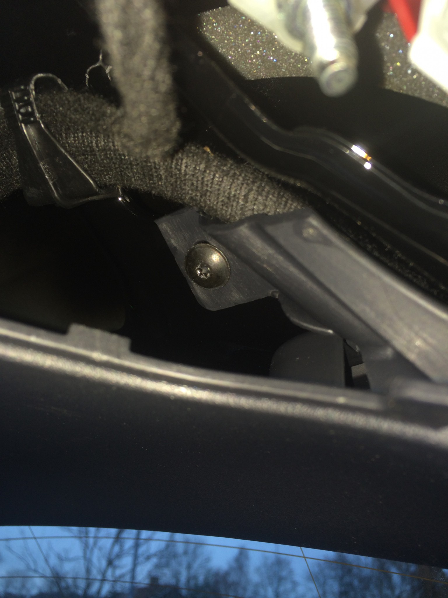 Men nu när jag gick ut och kollade extra noga med era kunskaper i tanken också så förstår jag konstruktionen lite bättre och tror faktiskt det är byggt i två delar. Den skruv jag försöker ta bort sitter förmodligen i interiören som går upp vid sidorna och över bakrutan. Om jag nu förstått detta rätt. Det märkliga är bara att det i så fall inte finns någon skruv i dessa fack för den del jag försöker ta bort alls. Det innebär att hela delen sitter med endast två skruvar som sitter vid handgreppen mitt på.