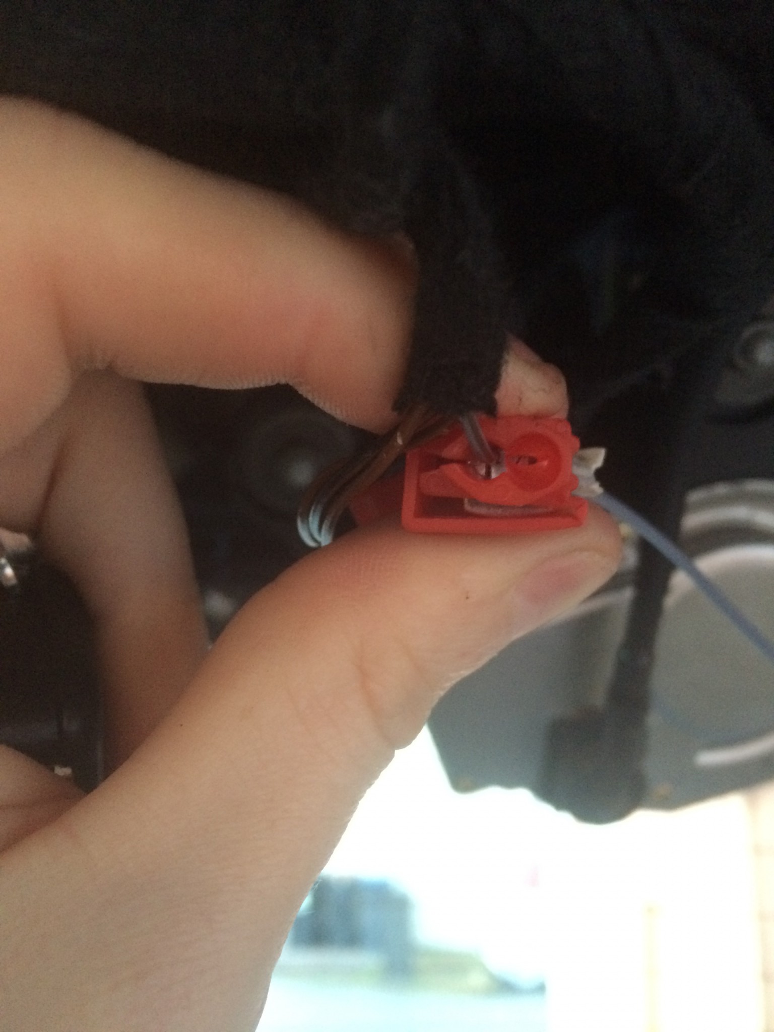 Nu är dom på plats. Allt fungerar förutom vänster bakluckebelysning... Fråga angående skarvklämma, ska den klämmas ett steg längre än detta eller är detta rätt: