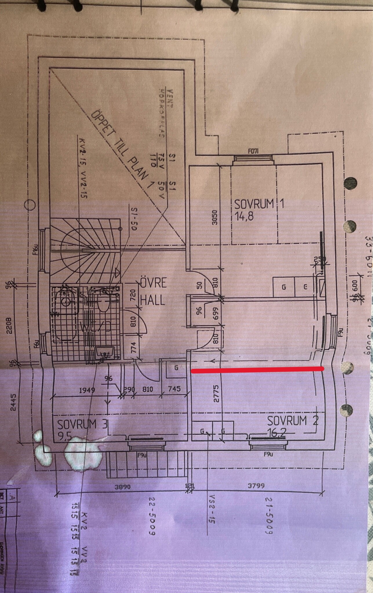 Vi behöver anlita byggare för att bygga en innervägg och på så sätt dela av ett rum till två barnrum. Det finns två fönster och vi tänker att vi delar av mitt i så att det blir ett fönster i varje rum.