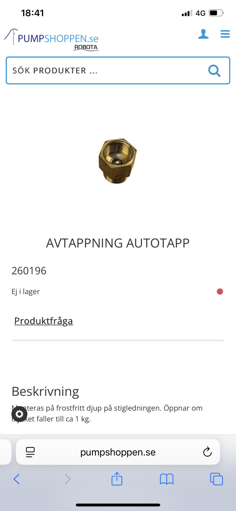 Detta är ju supersmart! Ska kolla närmare på en liknande lösning!B Bjober skrev:I fjällstugan ville jag tömma vattenledningen ner i brunnen men ville inte ha mer elprylar nere i brunnen än nödvändigt. Lösningen blev en helt mekanisk ventil som tätar när ledningen är trycksatt. Så fort man stänger av pumpen och gör systemet trycklöst så rinner vattnet ner i brunnen. Då kan en magnetventil för att dumpa trycket placeras i en bättre miljö än nere i brunnen. I mitt fall dumpar jag med kran inne i stugan och behöver då inte komma åt brunnen varken mekaniskt eller elektriskt.
