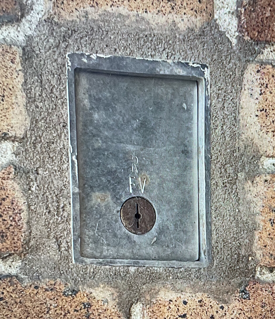 I fasaden bredvid ingången i ett gammalt hus (byggt 100 år sedan, renoverat efterhand) sitter en plåtlucka märk RFV. Vad finns bakom tro? Nyckel saknas.