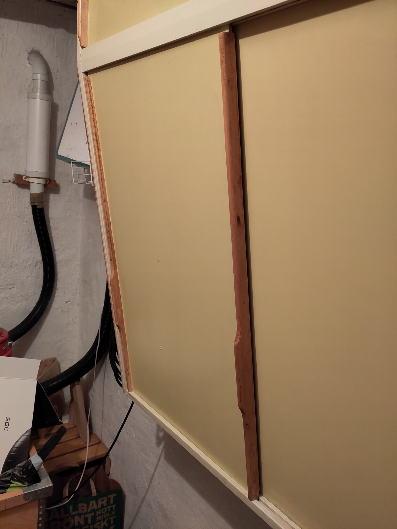 Har ett i matkällaren! Ska göra i ordning det och sätta upp i nya köket vi håller på med. Tog lite bilder, säg till om det är något jag inte fick med. Den ena dörren har handtag på båda sidor och den andra har en list på ena sidan, för stadga antar jag.