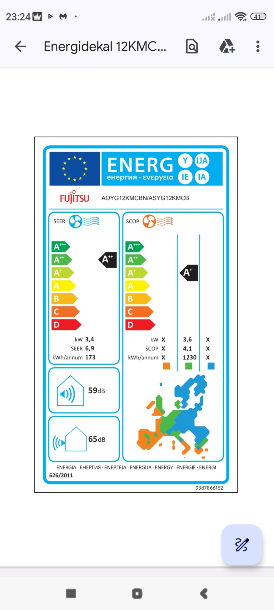 Enligt specen så ska utedelen ha en ljudnivå på 47 dB.