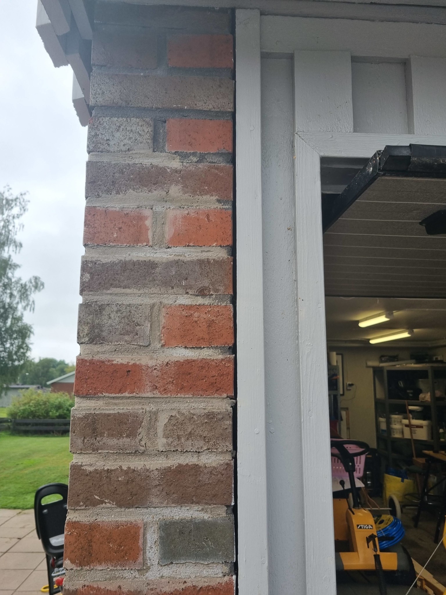 Jag har lagat fogarna på min tegelfasad och har dessa glipor på sidan där tegel möter trä som jag tänkte sätta igen med drev och flexskum då det känns som att det bara drar in kall-luft på vintern, samt borde komma in vatten vid kraftig nederbörd. Men då ser jag att det inte är några ventilationshål i fogen på själva fasaden. Varför? Ska jag vänta med att sätta igen dessa sidor för att först se om man kan hacka upp några ventilationshål närmast plattan? Antar att dessa glipor just nu fungerar som ventilationshål.