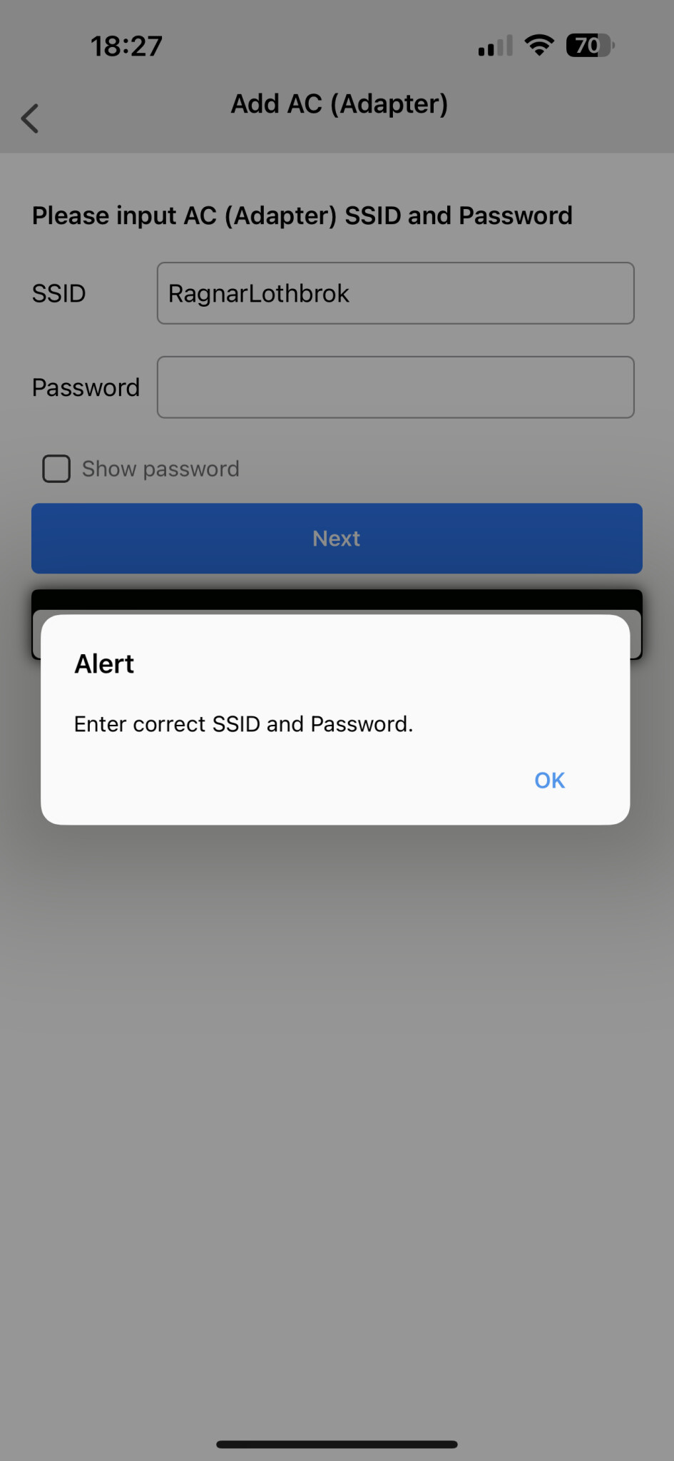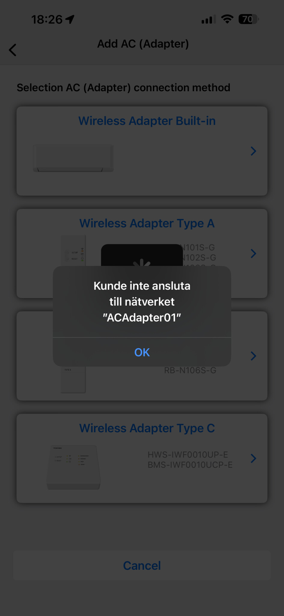 Dock lyckas jag inte koppla AC till nätet hur mycket jag än försöker! Den säger att SSID och lösenord är fel när det inte är det. Blir galen! Tycker det varit så smidigt att kunna styra värmen via appen😪😪😪