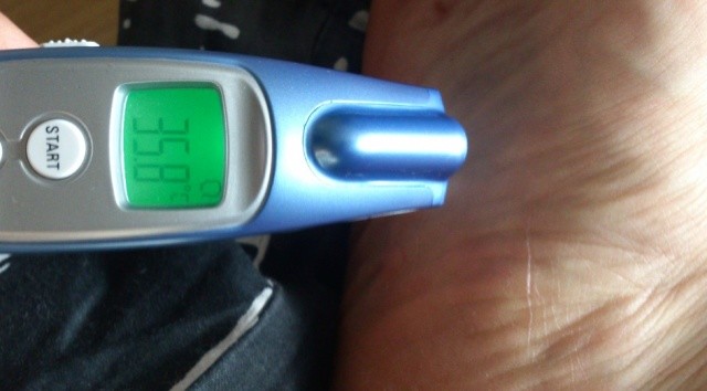 Din kropp har ca 36.6 grader. Fötter kanske 35.