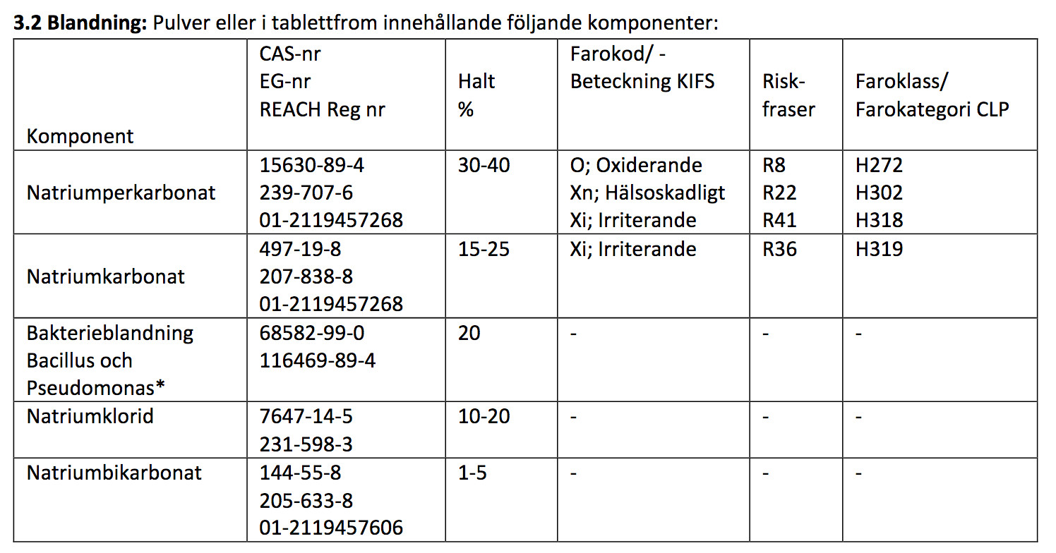 Från produktsäkerhetsdatabladet: