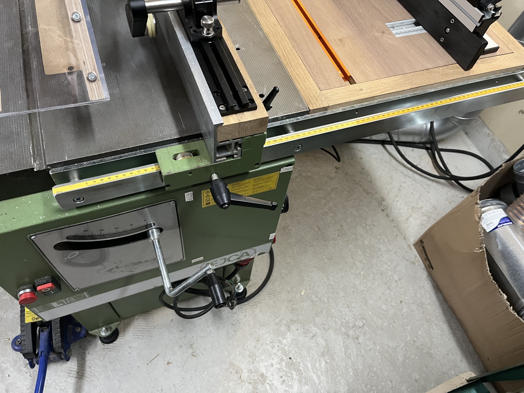 Ja jag är nöjd med breddningen. Ska bygga kök så småningom och behöver kunna klyva 600-700 mm. Var lite fundersam när jag fick grejerna från Ejca, man får till ett plattjärn som man sedan fäster stången i. Plattjärnet var rejält skevt. Ejcas svar var att man spänner det rakt, vilket väl funkar men är förmodligen lättare om man köpt deras förlängningsbord. Kanske inte vad jag väntade mig när man betalat ca 4000 för en ny stång bara. Köpte ytterligare ett plattjärn (inte från Ejca) och satte på andra sidan också.