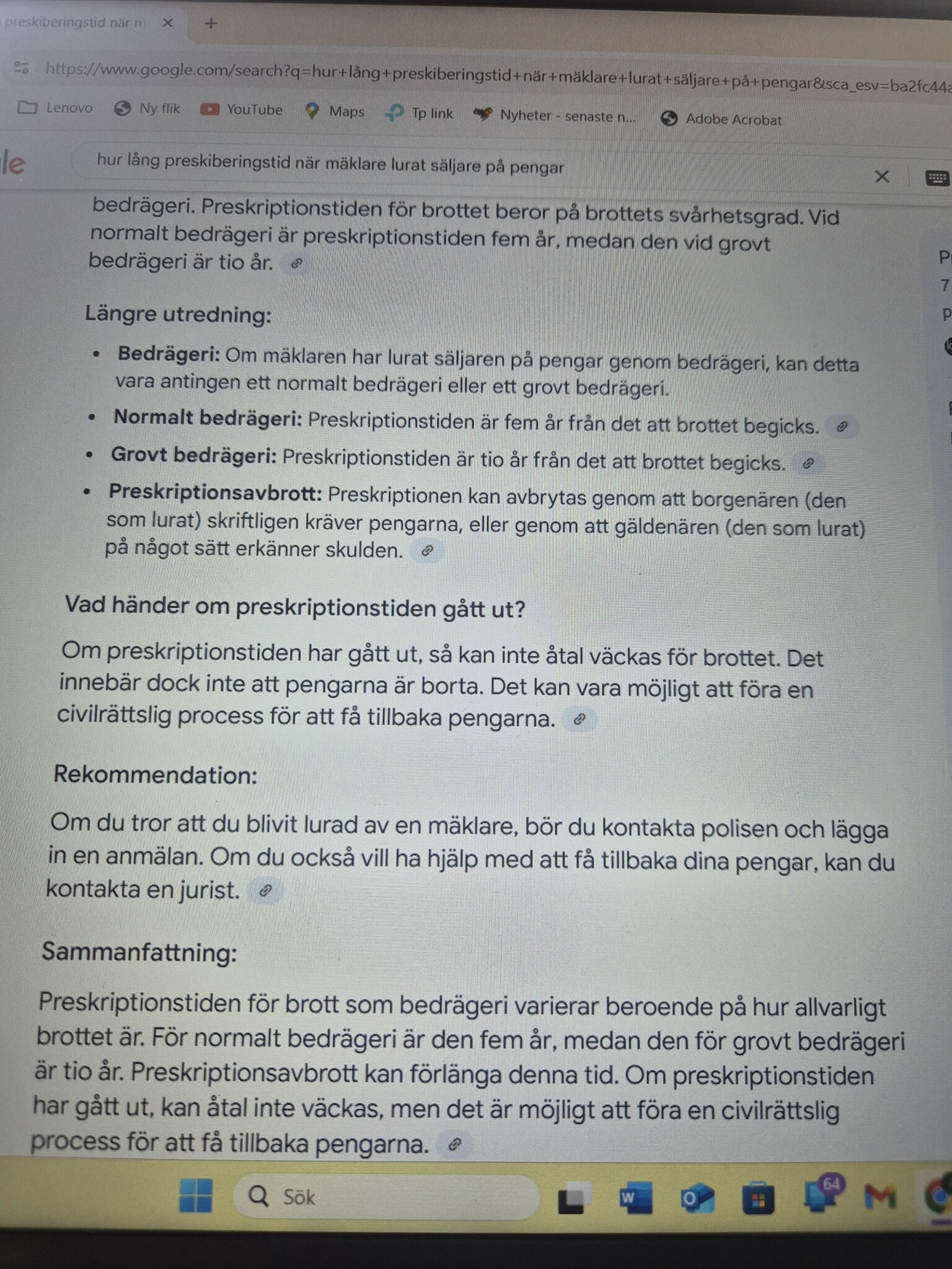 När informationen finns samlad, så får man se vad som kan vara möjligt att bevisa. Skulle det ex. visas sig att mäklaren arbetet för en stor kedja, så är det inte helt otänkbart att de ersätter förlusten trots presktription, OM det går att bevisa. Och det är till och med tänkbart att om de numera är medvetna om hur mäklaren höll på (kanske fått sparken och blivit avregistrerad för liknande bedrägerier) , så kanske de tror på det även utan helt vattentät bevisning. Önsketänkande, men kan vara värt att prova.