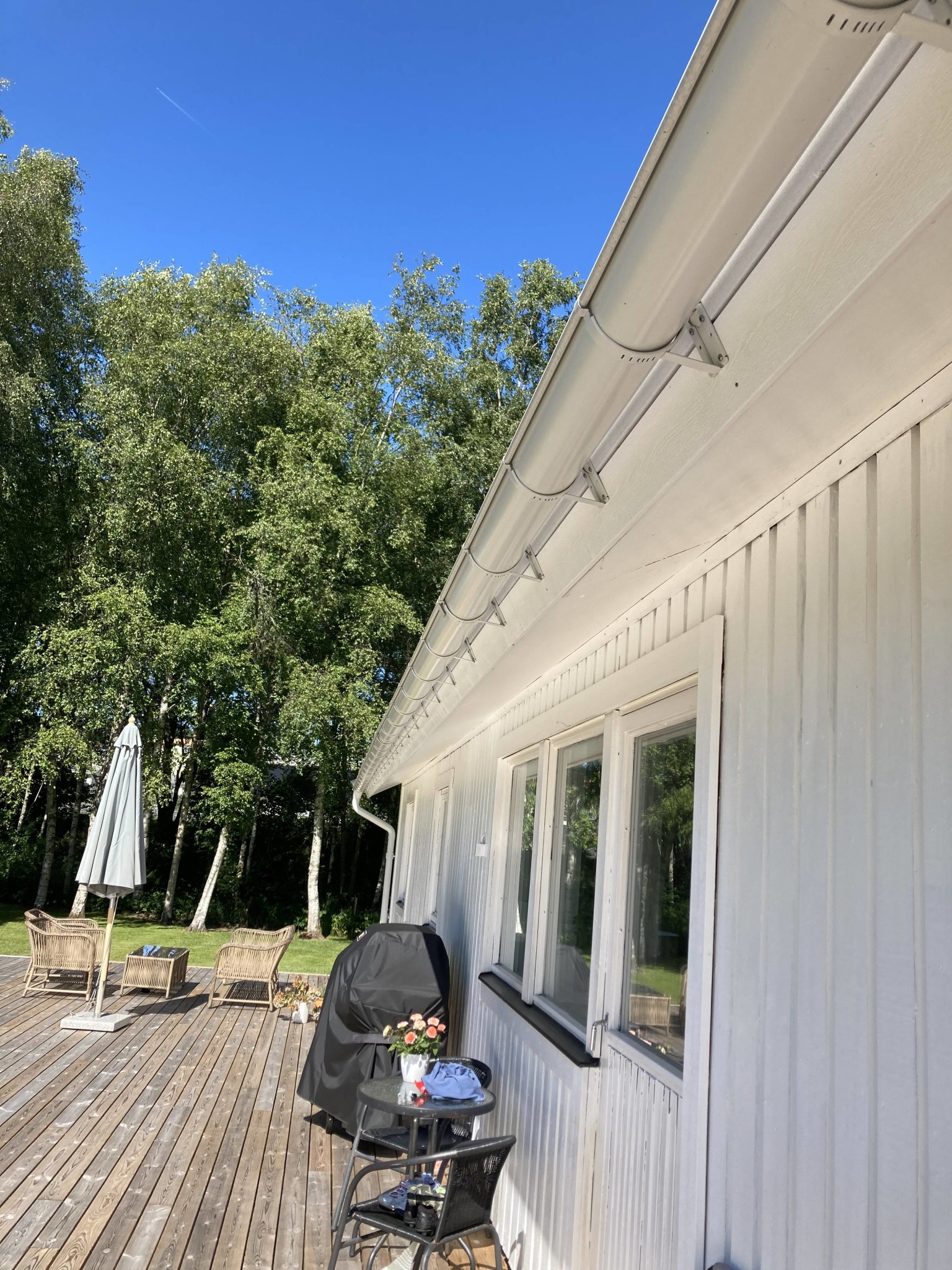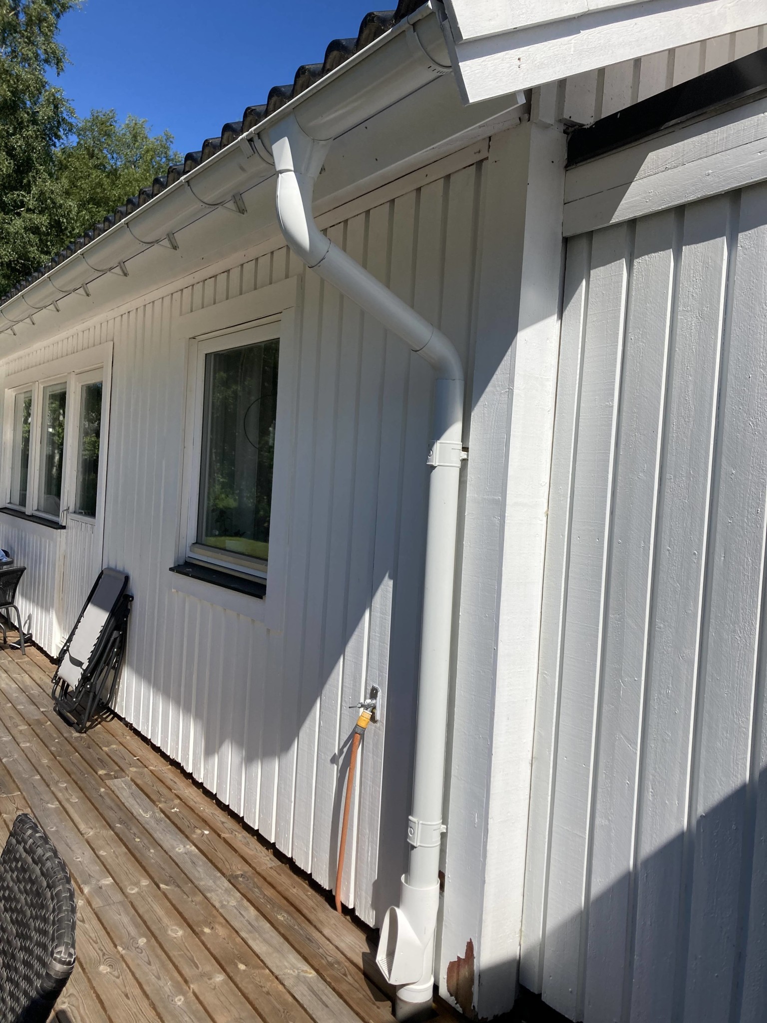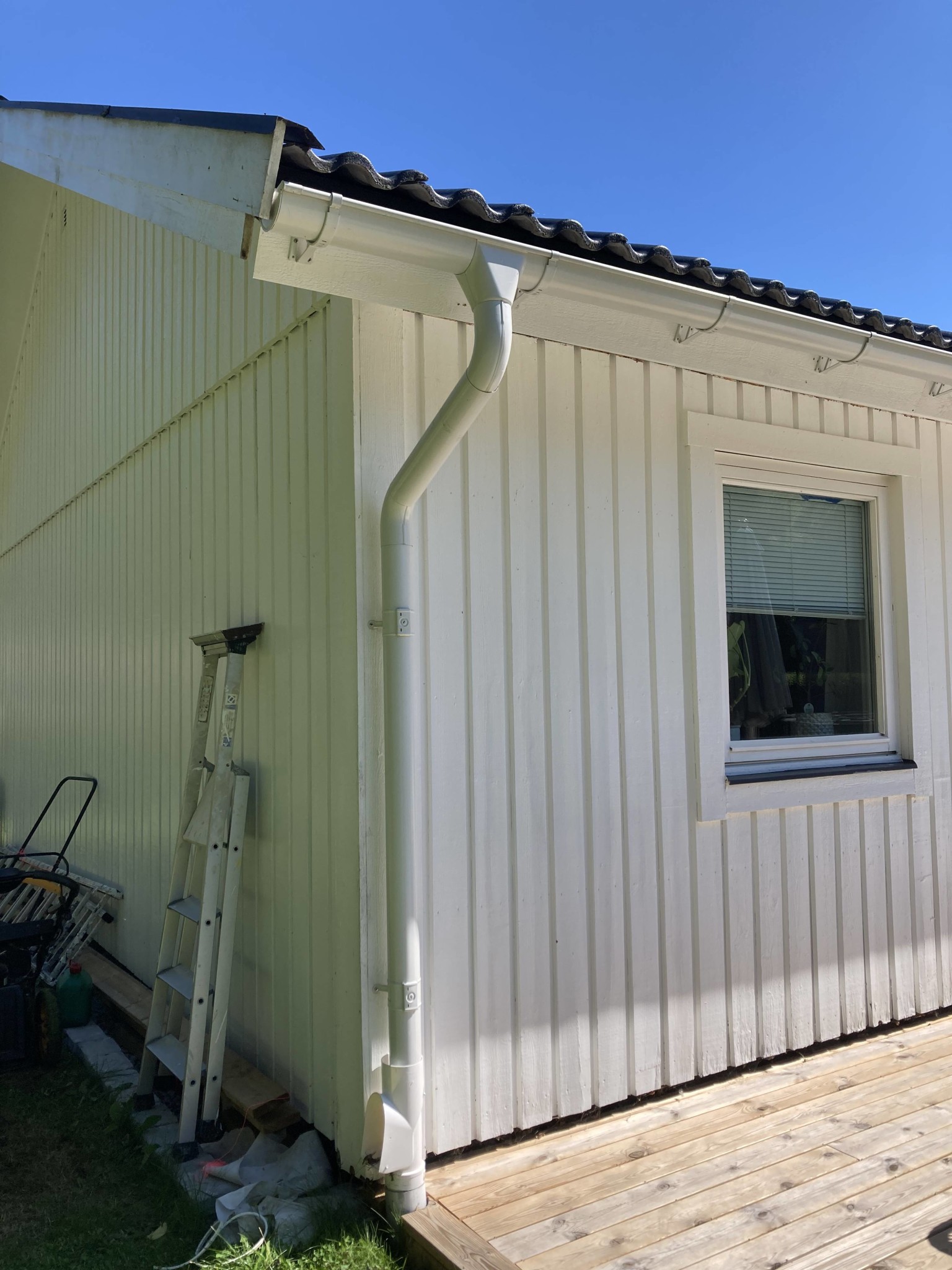 min morbror är besiktningsman, jag skickade dina bilder till honom. Han sade att det var det värsta han sett. För det första får man inte göra stuvbitar, rostar lätt och sitter för långt ned mot grus, det ska finnas utrymme för silkopp och man ser längst ned på stupröret att den ska vändas uppåt, man får inte skruva i dessa för snart är rosten där så han undrar VAD de satt fast rännan med, vad sjutton säger han. 12000kr är det verkligen inte värt. HOTA MED ATT NI SKA TA DIT EN BESIKTNINGSMAN INNAN NI BETALAR, ring husförsäkringsbolaget och fråga vad ni kan göra. Han säger att det är förbjudet med glipa mellan hängrännan och virket. Din vän har blivit så lurad. Om hen skulle sälja huset skulle detta aldrig bli godkänt.P PNF skrev:Hej forumet!!