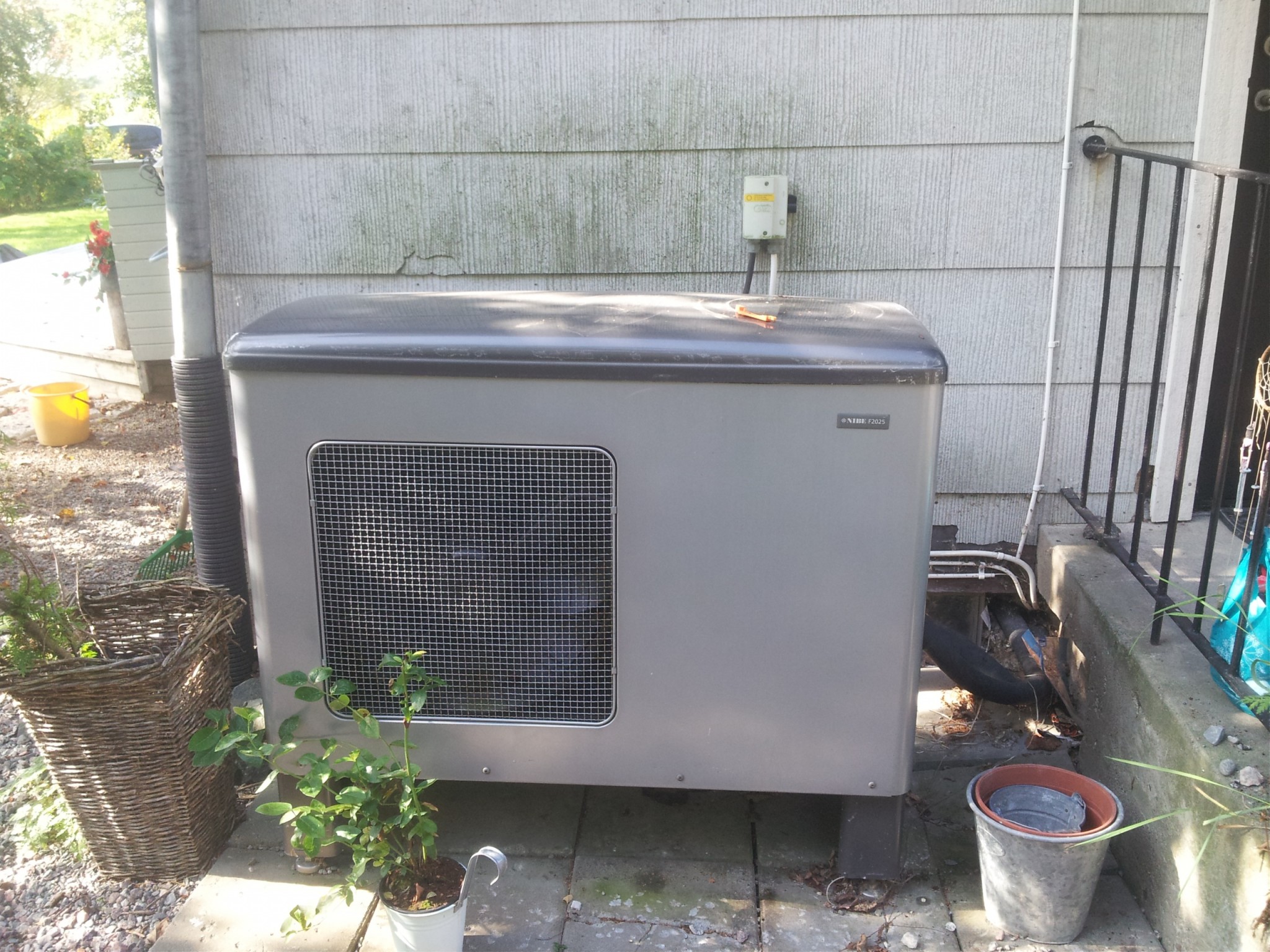 Vi bor i Mälardalen, har haft riktigt kalla vintrar. De som installerade pumpen ställde den bara på vanliga plattor, som genom åren har sjunkit och spruckit. Dessutom lutar det mot huset, så vi behöver verkligen leda bort vattnet från grunden. Vi tänkte försöka lyfta pumpen, gräva ur och gjuta antingen en hel sockel eller få upp den på plintar. Tänkte även byta ben till några smalar som inte bromsar vattnet. Har läst att man kan leda bort kondensvattnet med en isolerad slang med värmeslingor i, men hört både bu o bä om dom. Ska även bygga ett tak över den för att skydda från snöras o regn från taket.