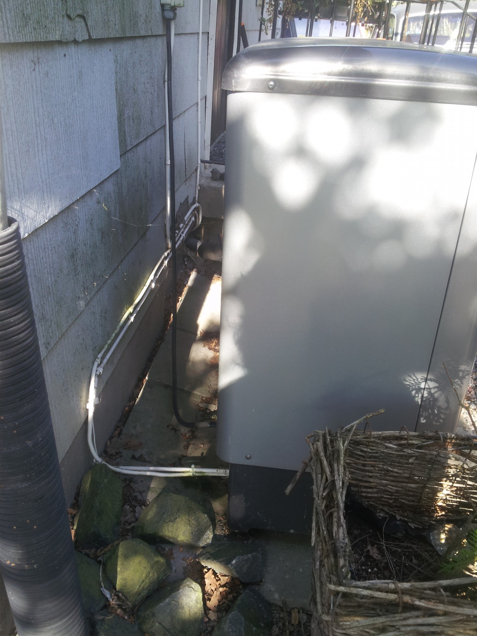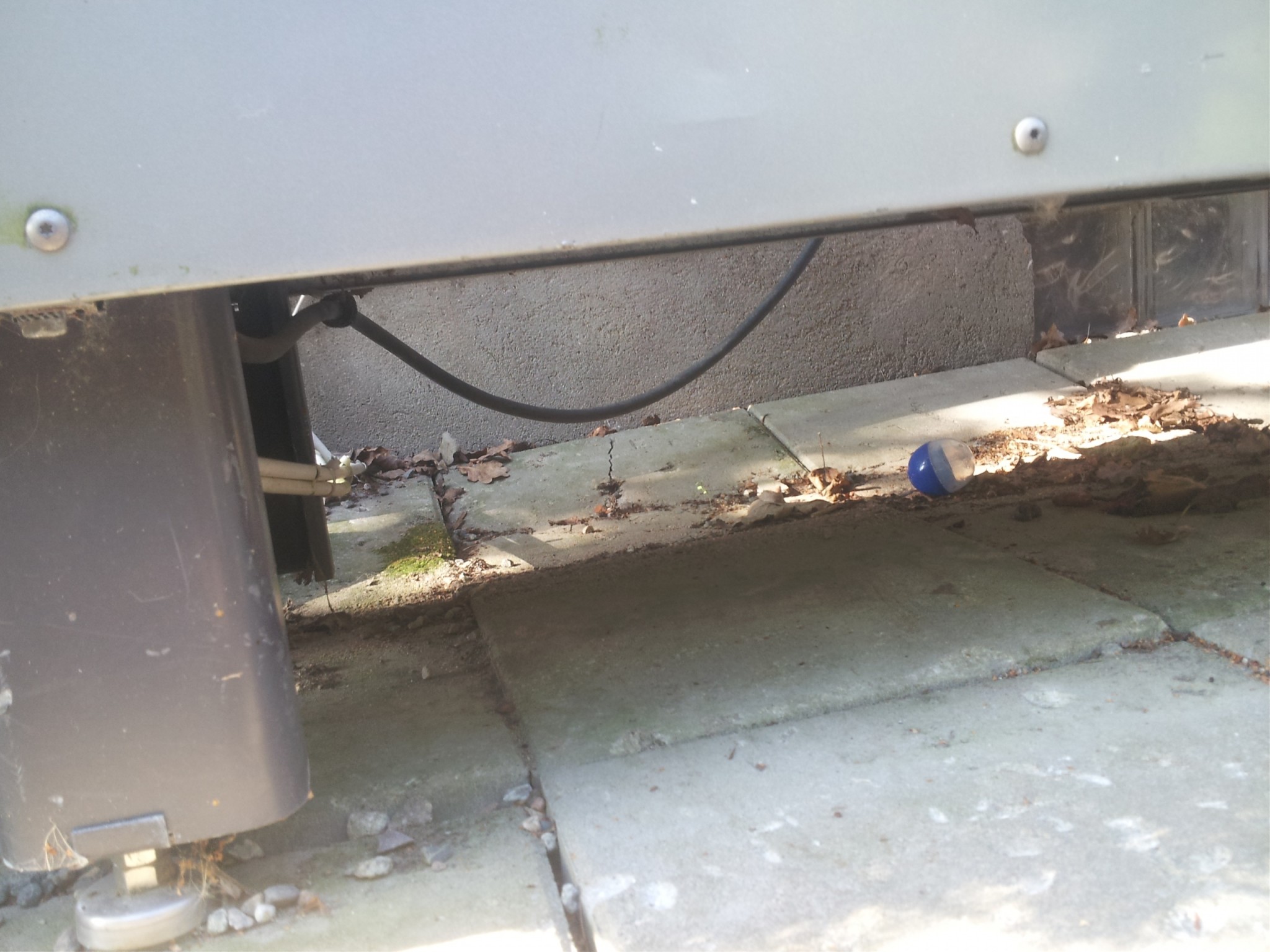 På vintrarna bildas det massiv is av kondensvatten under, bakom o ja, överallt på marken under vår lv-värmepump.