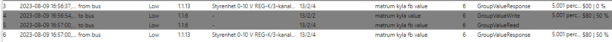 Verkar som en rimlig parametersättning (och nästan samma som mitt exempel), och telegrammen verkar ju rimliga - incklusive ack från aktorn att den satt utgången till 50%, skumt.