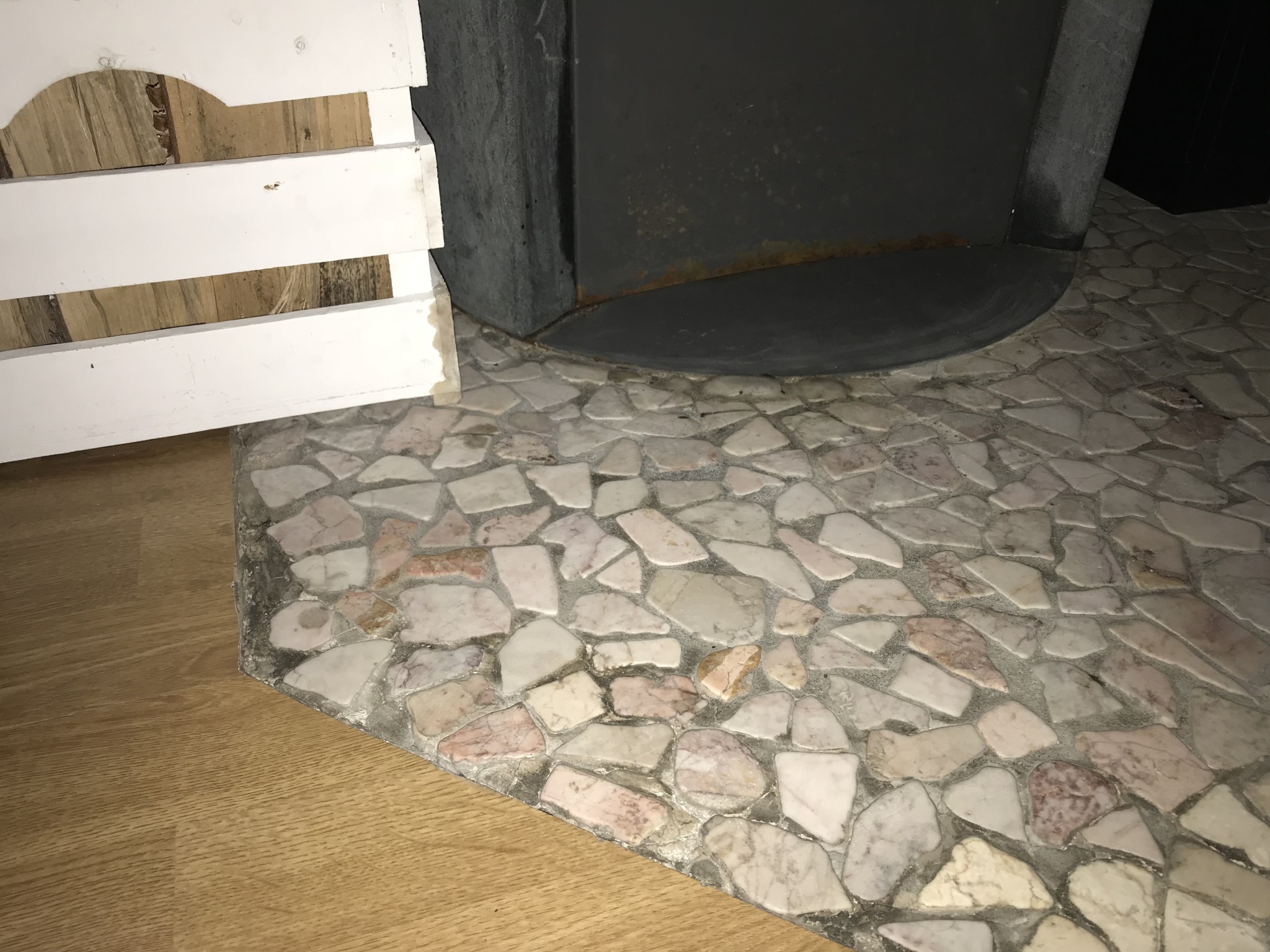 Jag har en kamin som står på stenplattor idag. Dessa är utsågade i laminaten så att dom ligger i samma höjd. Jag vill nu lägga ett nytt golv på befintligt golv men får då problemet att jag måste kapa ur det nya golvet för kaminen...