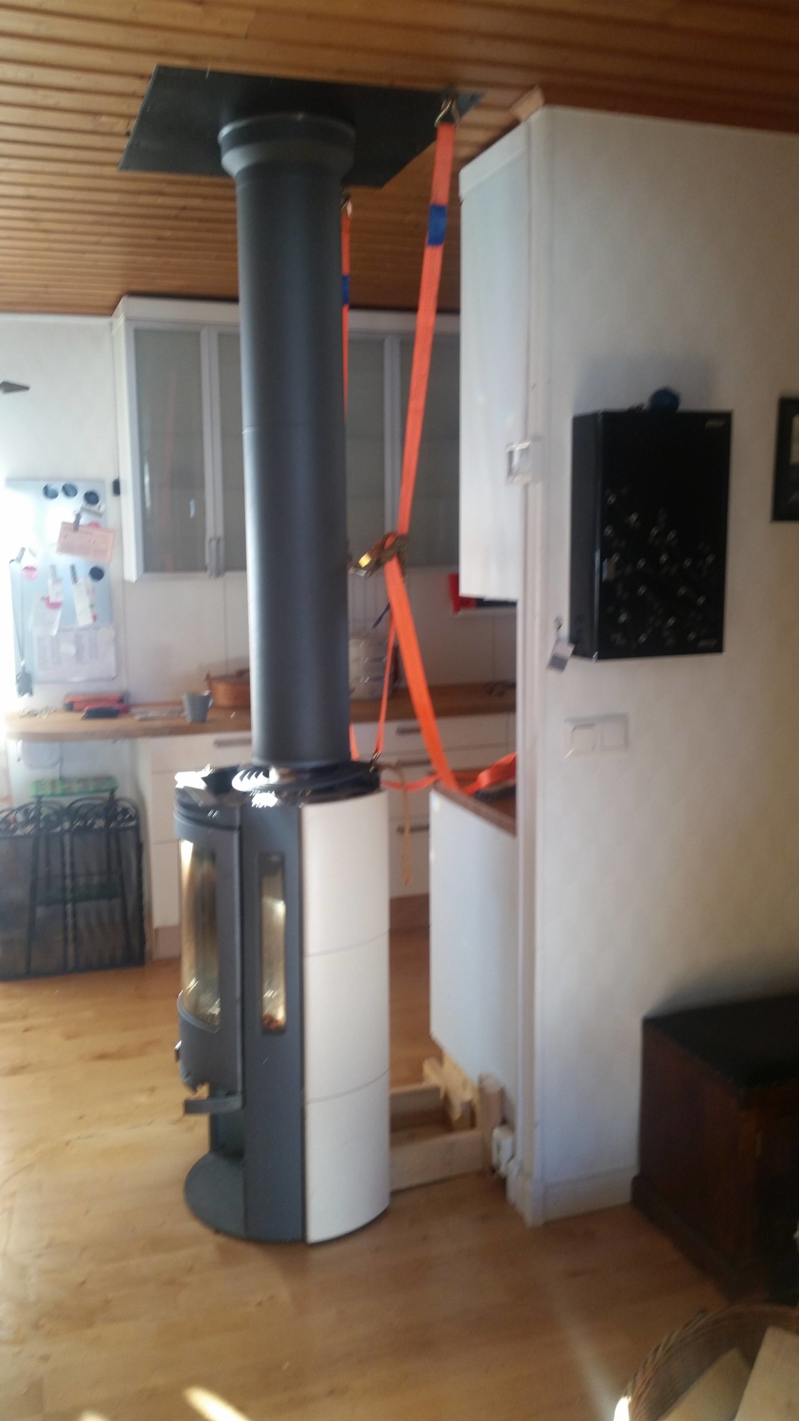 nä du måste ju ha gnistskyddet intakt, det som är stenarna idag alltså. Att lyfta kaminen är visst inte all gånger så enkelt då skorstenen oftast står på kaminen.