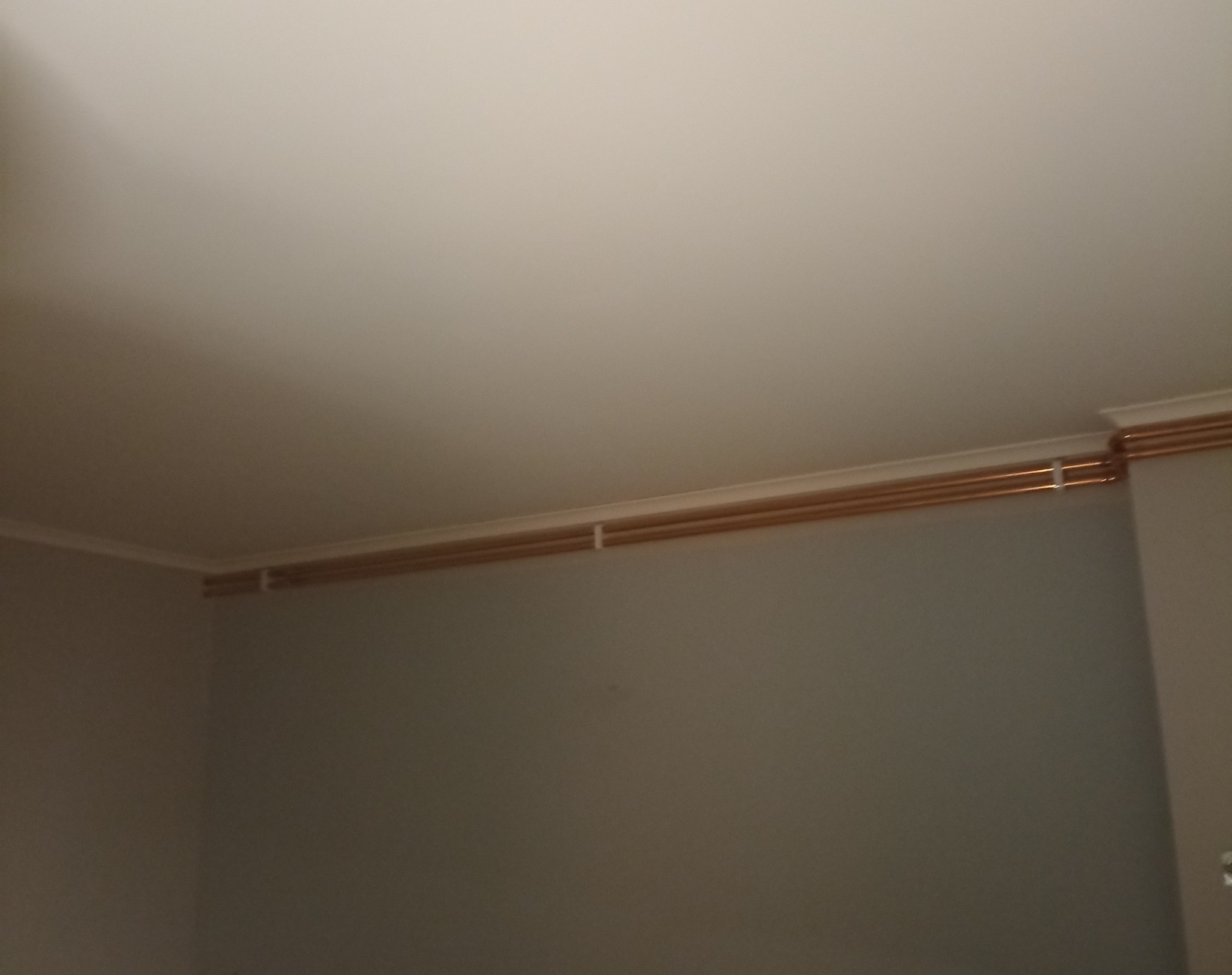 Bor i en lägenhet där jag fått tillåtelse att måla om. Dom valde att måla lägenheten i en mörk grå färg och ljusinsläppet i lägenheten är otroligt liten vilket gör hela lägenheten mörk. Problemet är att man har valt att göra en väldigt ful lösning när man har dragit värmerören i koppar, man har dragit dom utanpå efter väggen upp mot taket. Det är en liten springa mot väggen, men är inte helt säker hur jag ska komma åt att måla där utan att råka måla rören?