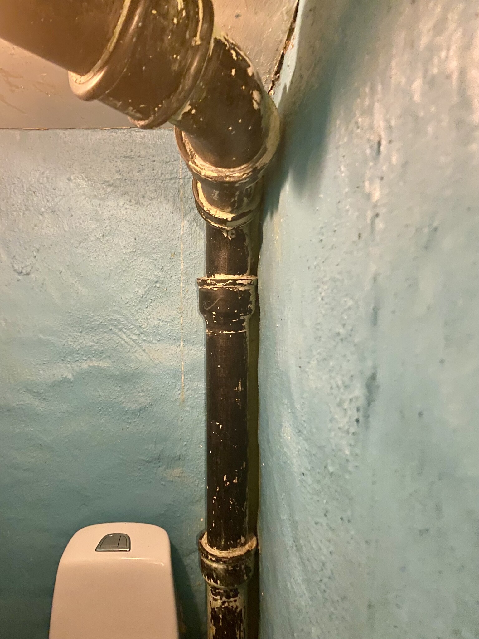 Hej! Håller på att fixa toaletten i källaren. Tanken är att framhäva detta gjutjärnsrör och ha det svart. Problemet är att det är ett jäkla meck att få det hel fritt från färg (flera lager färg plus svåråtkomligt pga nära vägg och toastol).