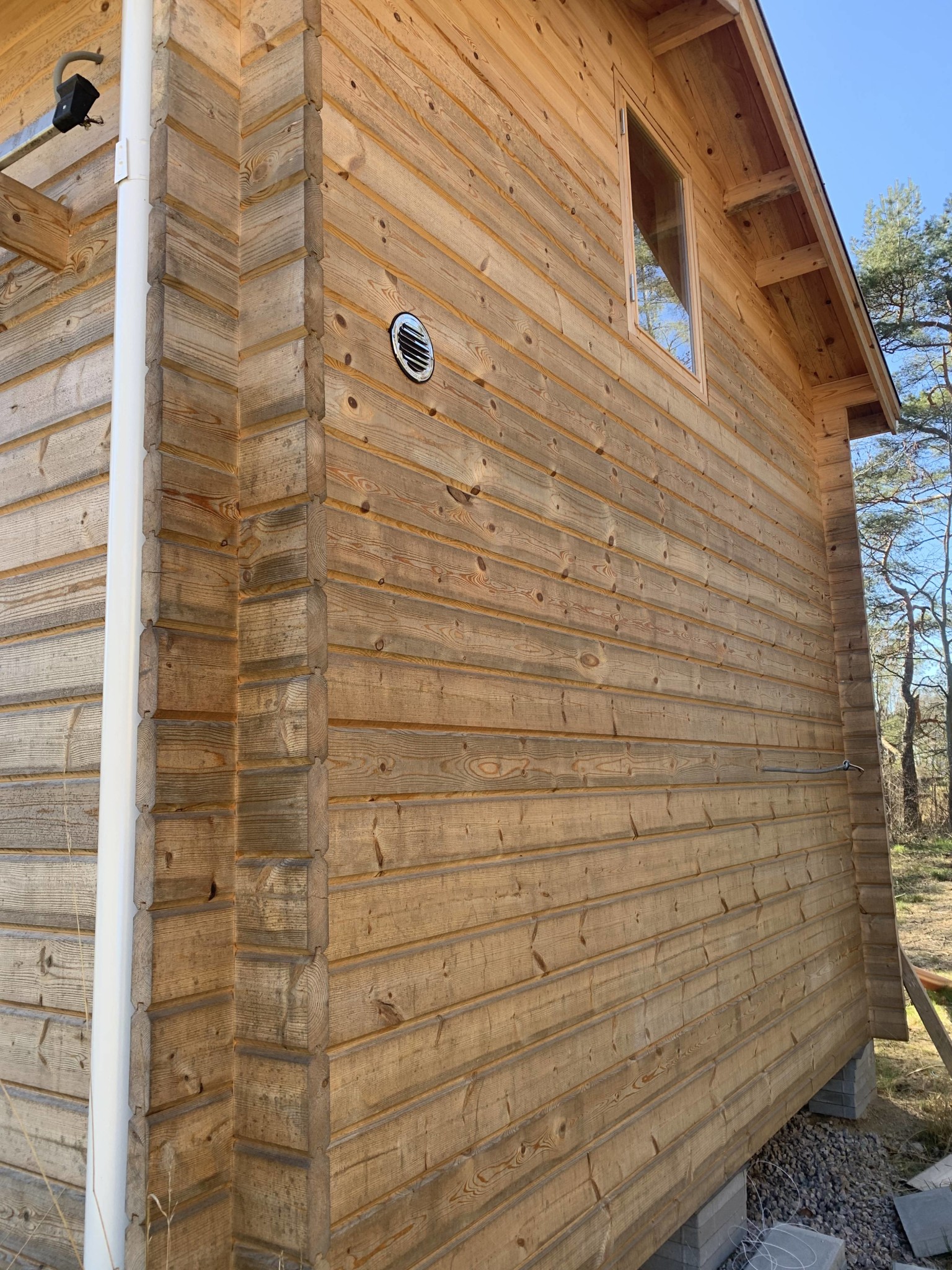 Nu är det vår i Skåne. Det är snart dags att mål fasaden på den knuttimrade attefallsstugan. Jag oljade in fasaden med linolja innan vintern och ska nu stryka fasaden med linoljefärg (faluröd).