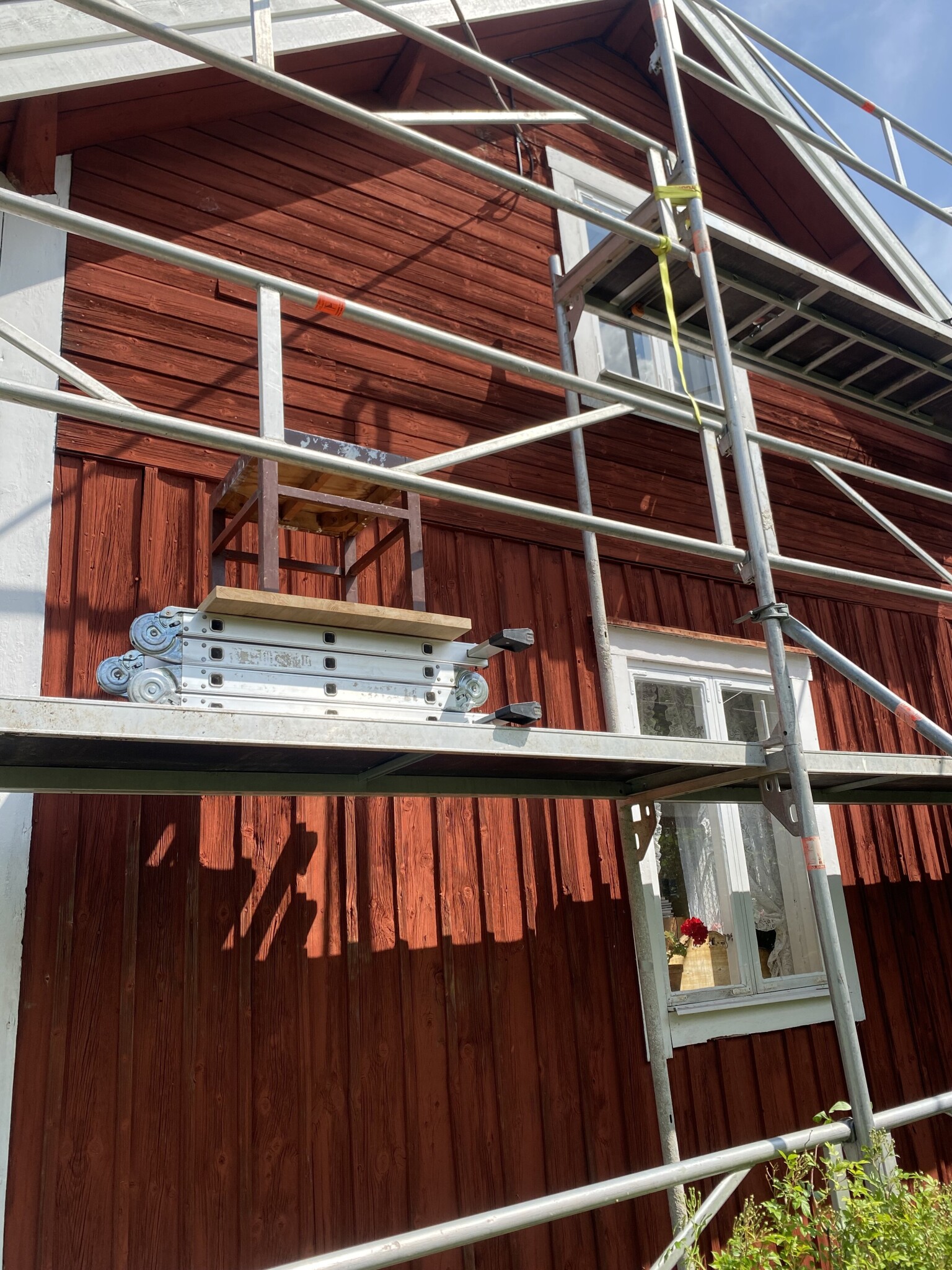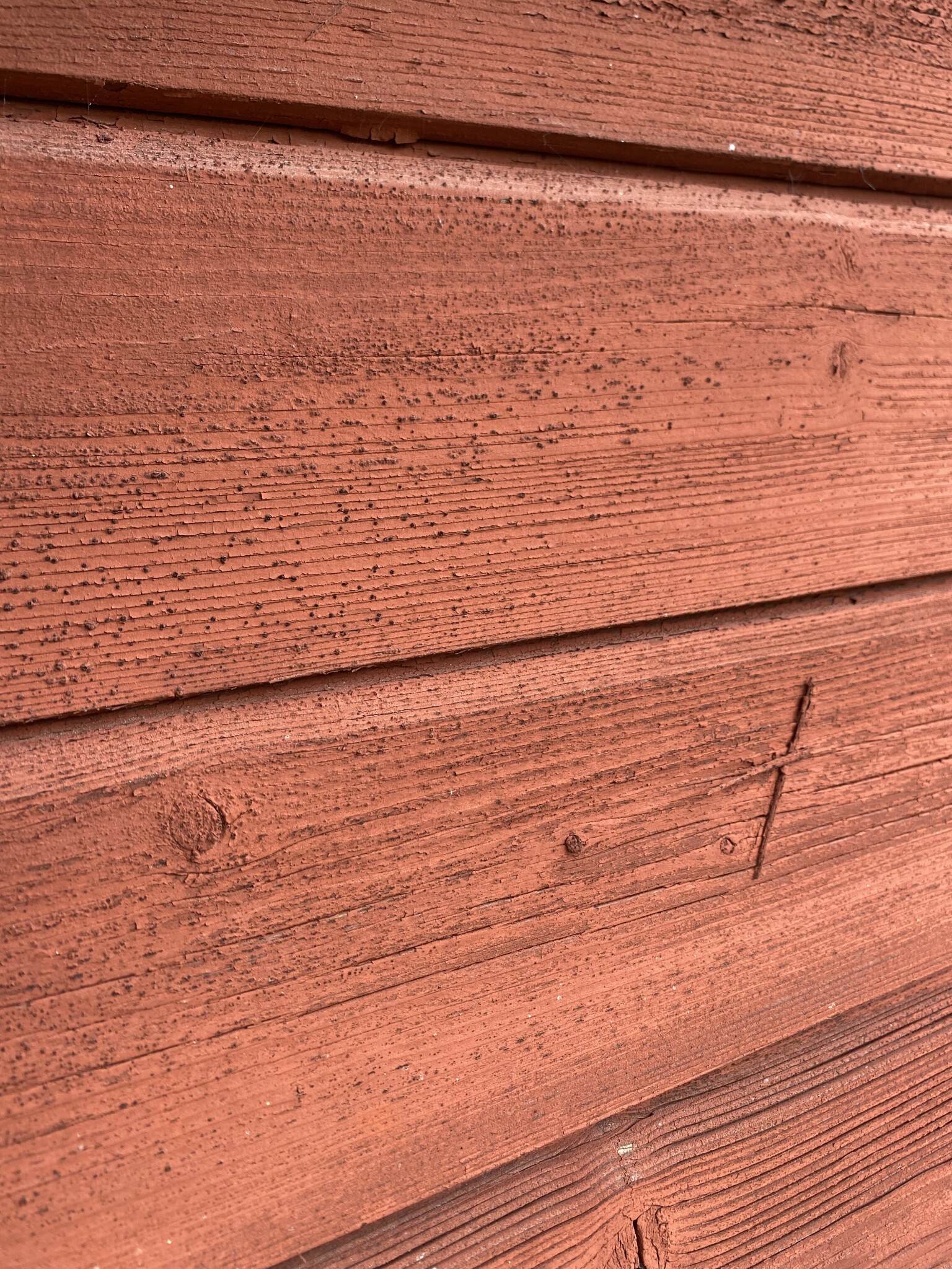 Jävla skit också. Skulle äntligen börja borsta söderväggen men märkte nu att det även är svarta mögelprickar även på den väggen. Inte alls lika mycket som på norra väggen men det är finns här och där. Och även en hel del på det vita fodret.