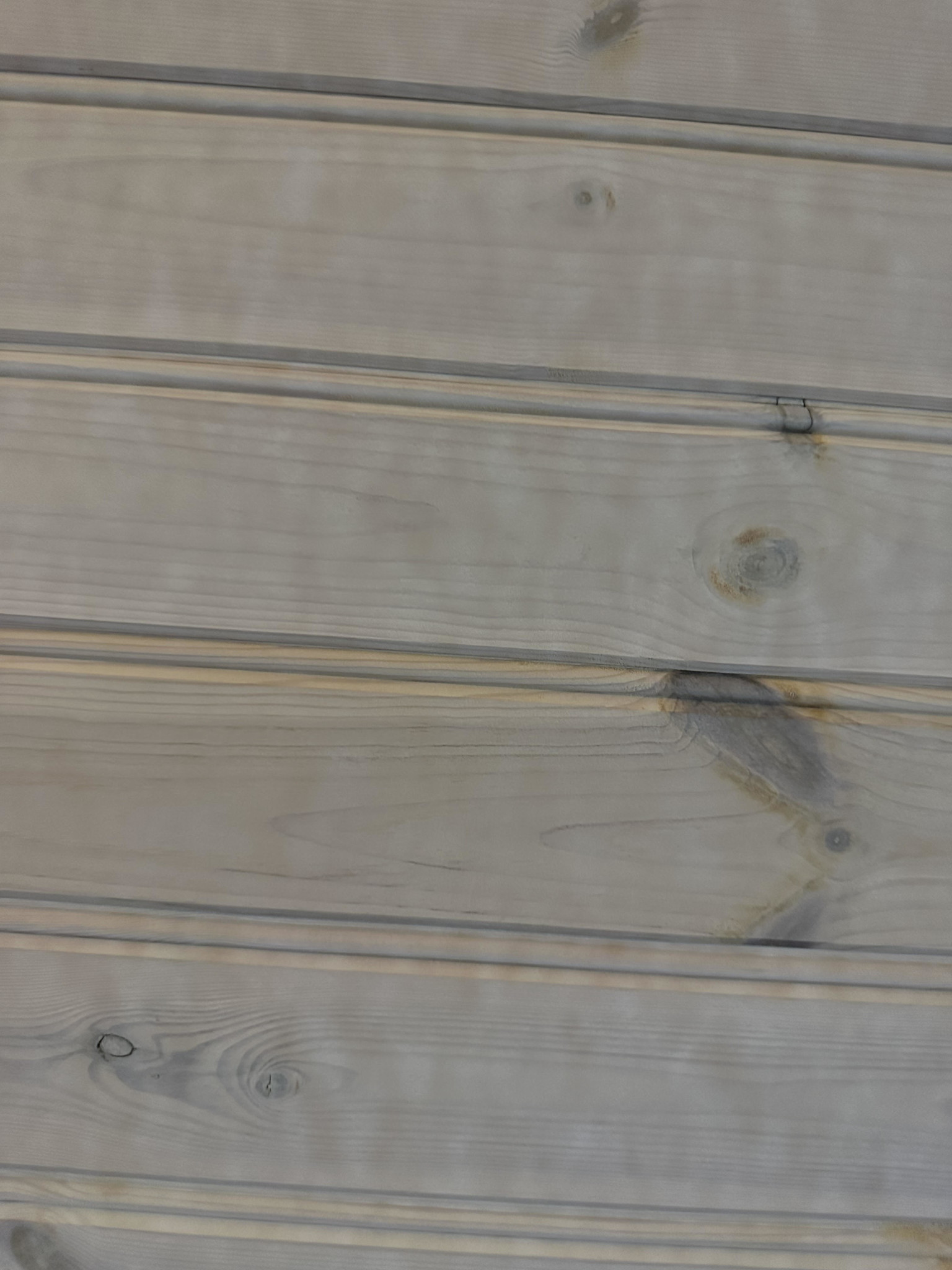 Har svårt att komma fram till vad de tidigare ägarna har använt för produkt på taket. Brädorna är inte glansiga och känner man så är det inte mjuk yta.