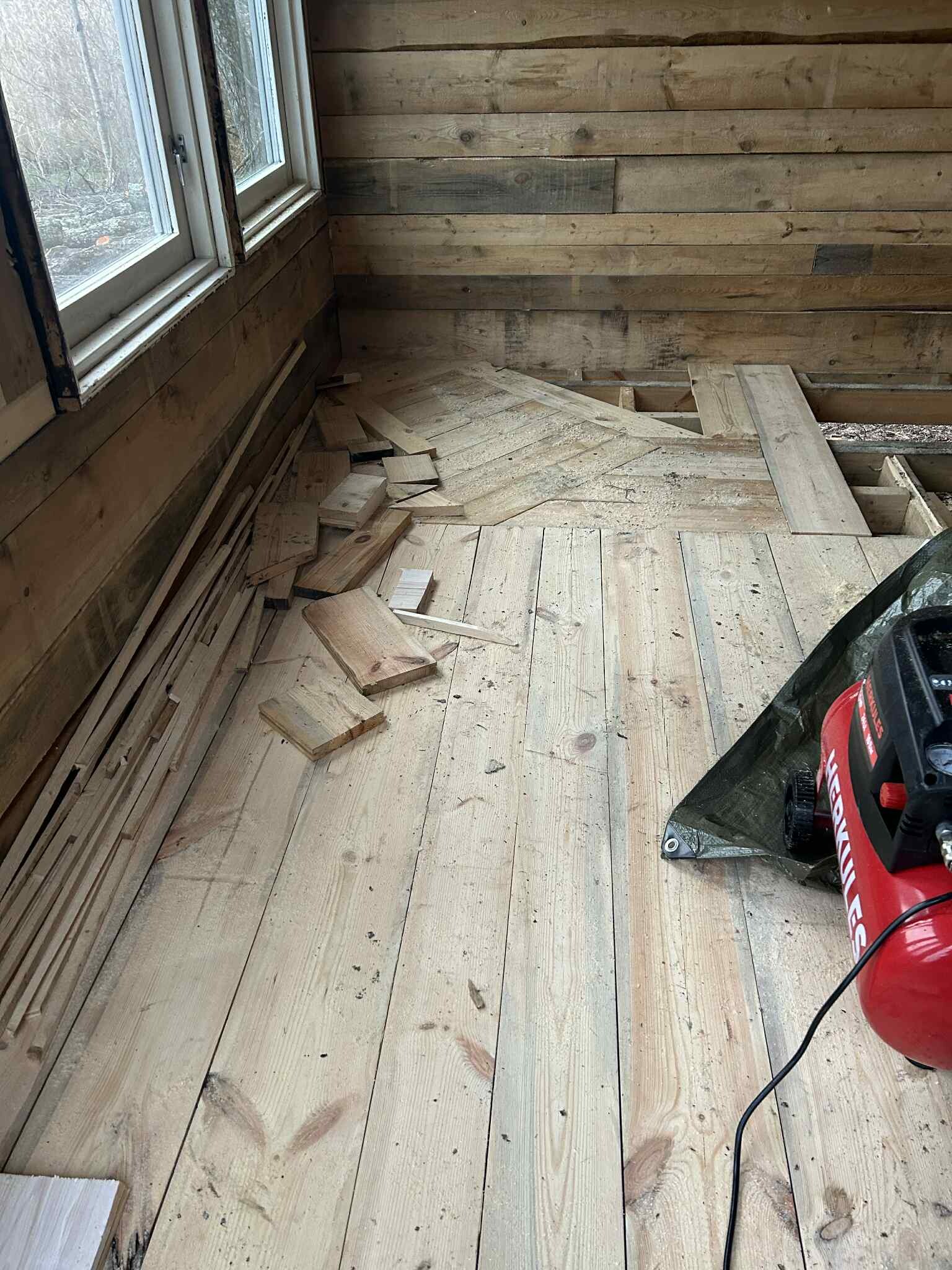 Golvet är furu och jag tänkte såpskura det. Ska bli ett innertak också som behandlas med ismo vitpigmenterad oljebets