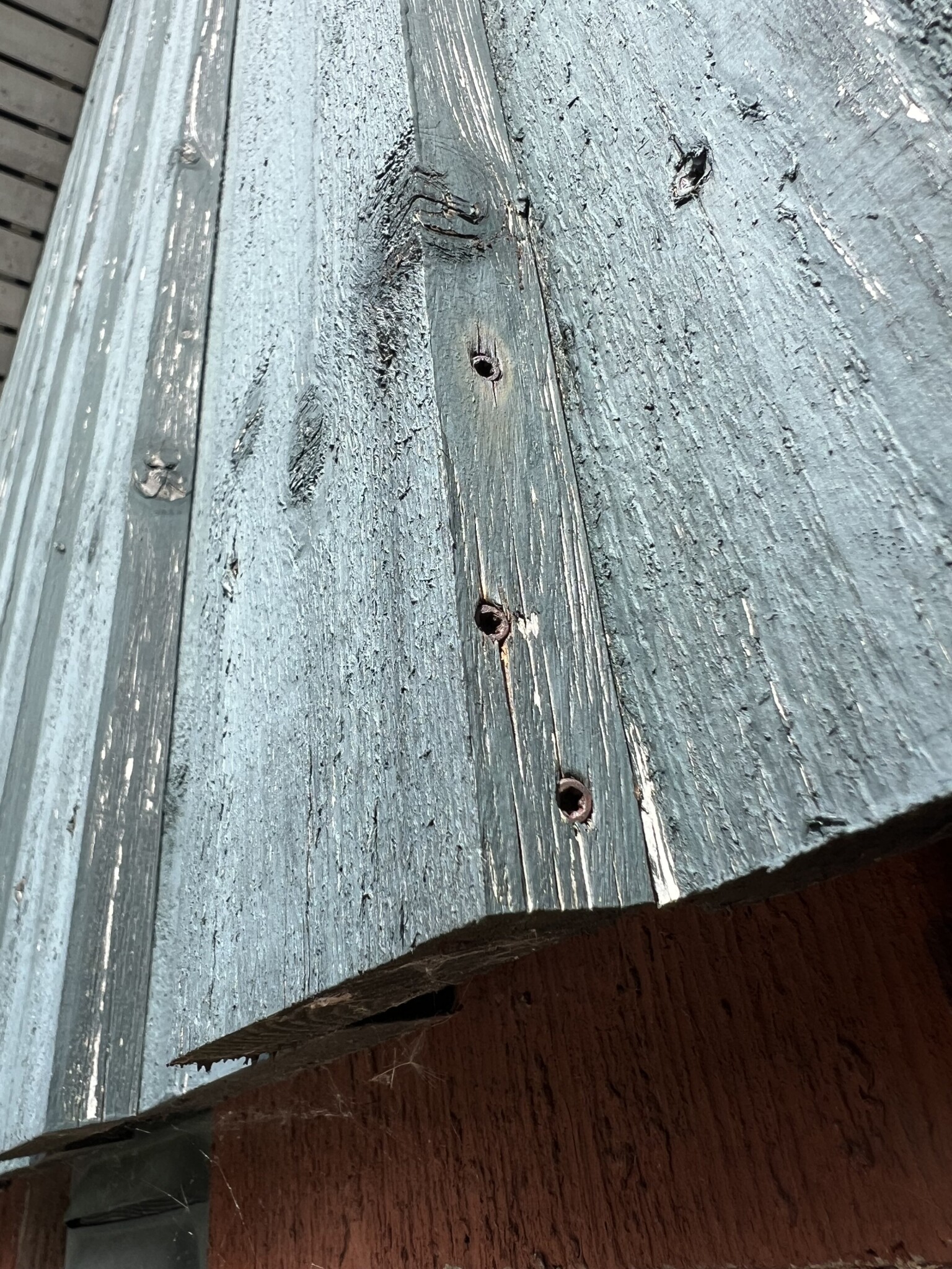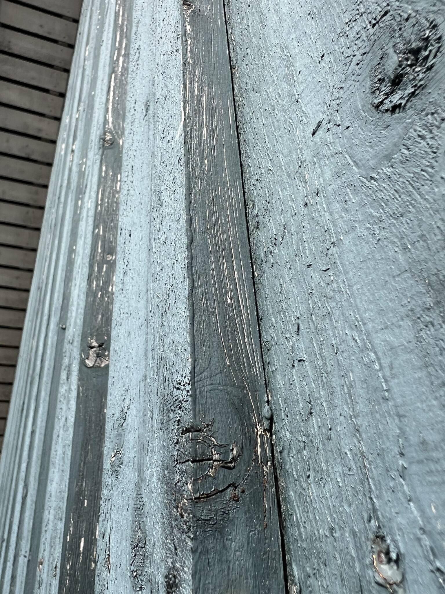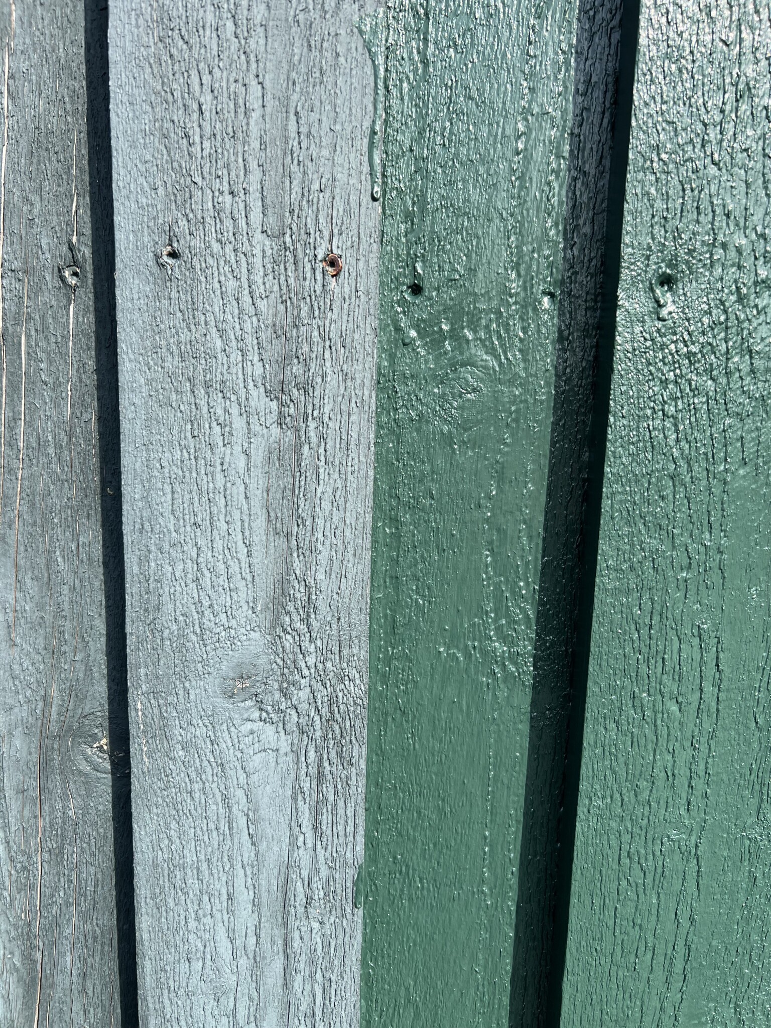 Som amatör måste jag säga att jag blivit blind för hur pass slitet det ändå var. Exakt samma färg men där vänstra är en bräda som ska bytas ut och högra är en som fick hänga med ett tag till efter två strykningar.