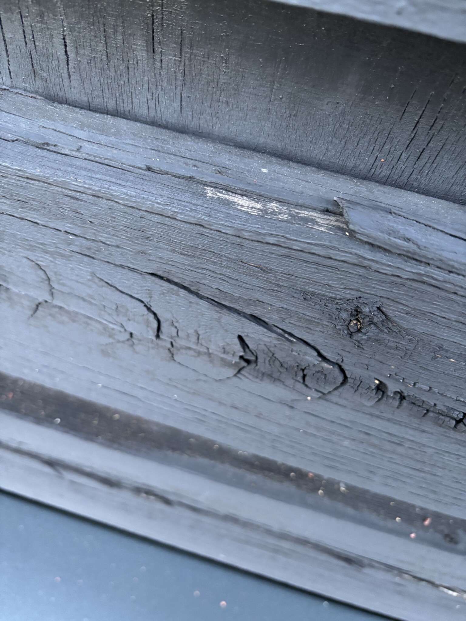 Det ör på sådant trä jag tycker linoljefärg verkar funka allra bäst. Man ser hur underlaget suger i sig oljan från första strykningen till sista. Jag vet inte om man ska/bör göra så men jag slog i mer kokt linolja i både andra och tredje strykningen för partier som var riktigt uttorkade. Det var enda sättet att få ungefär samma glans när färgen var torr. Annars var de torra partierna matta och jag tolkade det som om att oljan sögs in i trät i betydligt högre omfattning.
