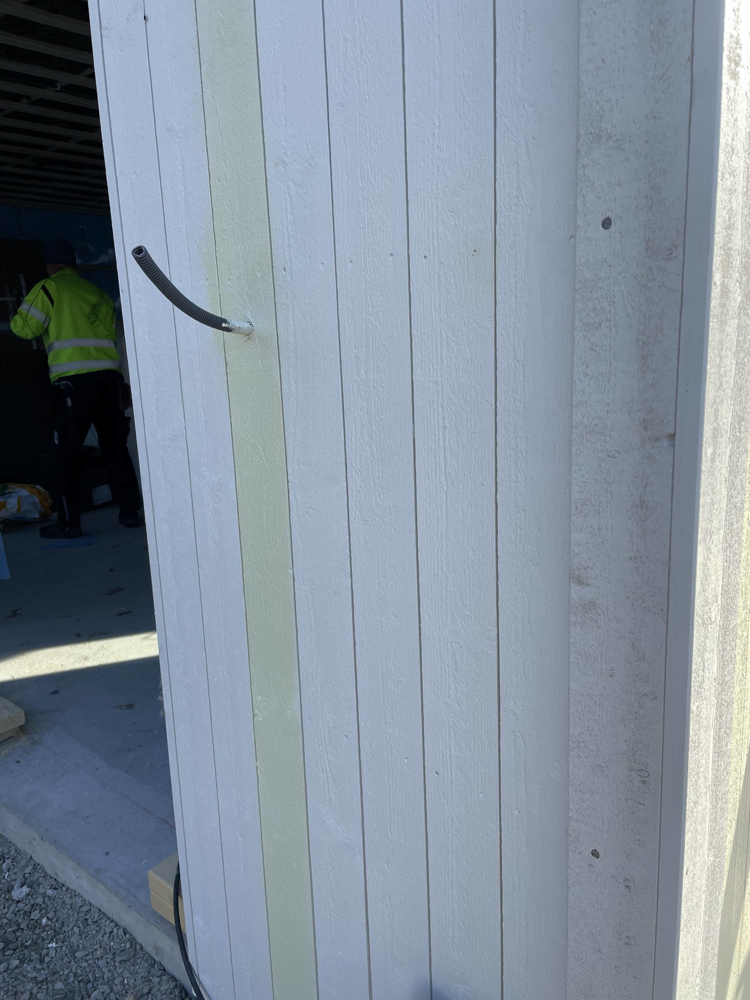 Vi har målat vårt garage. Burk 1 som vi målade med först ser bra ut, när vi sen målade med burk 2 såg det bra ut först, tills allt torkat då är färgen från burk 2 mycket gulare. Se vänstra sidan av väggen i bild. Vi målade om med färg från burk 3, då den såg bra ut direkt, men efter natten när allt torkat är det lika gult igen. Så vi har nu två sidor som är målade med burk 1 som ser bra ut, men två sidor som är målade med burk 2 och 3 som är för gula. Vi fattar inte vad som blivit fel! Vi valde s 0502-y för att ha fasaden i samma kulör som fönstren, men nu vet vi inte vilken burk som var rätt. Vet att S 0502-y har gult i sig, men Inge såhär! Måla om måste vi ju iaf. Nån som varit med om liknande eller har tips på en kulör som inte är för bländande vit men ej heller för gul, men som ändå inte får våra fönster att upplevas smutsiga?