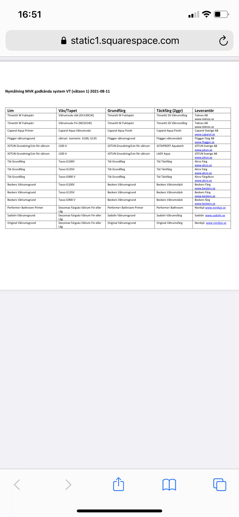vilken golvfärg använde du? Våtrumsfärg el golvfärg?ColbyTheBear skrev:Hadde proffs här som målar käket och de sa att det går bra. Att förarbetet är viktigast. det svåraste var att få bort silikon rundt den gamla duschen. Det var silikonsmitta på halva golvet .