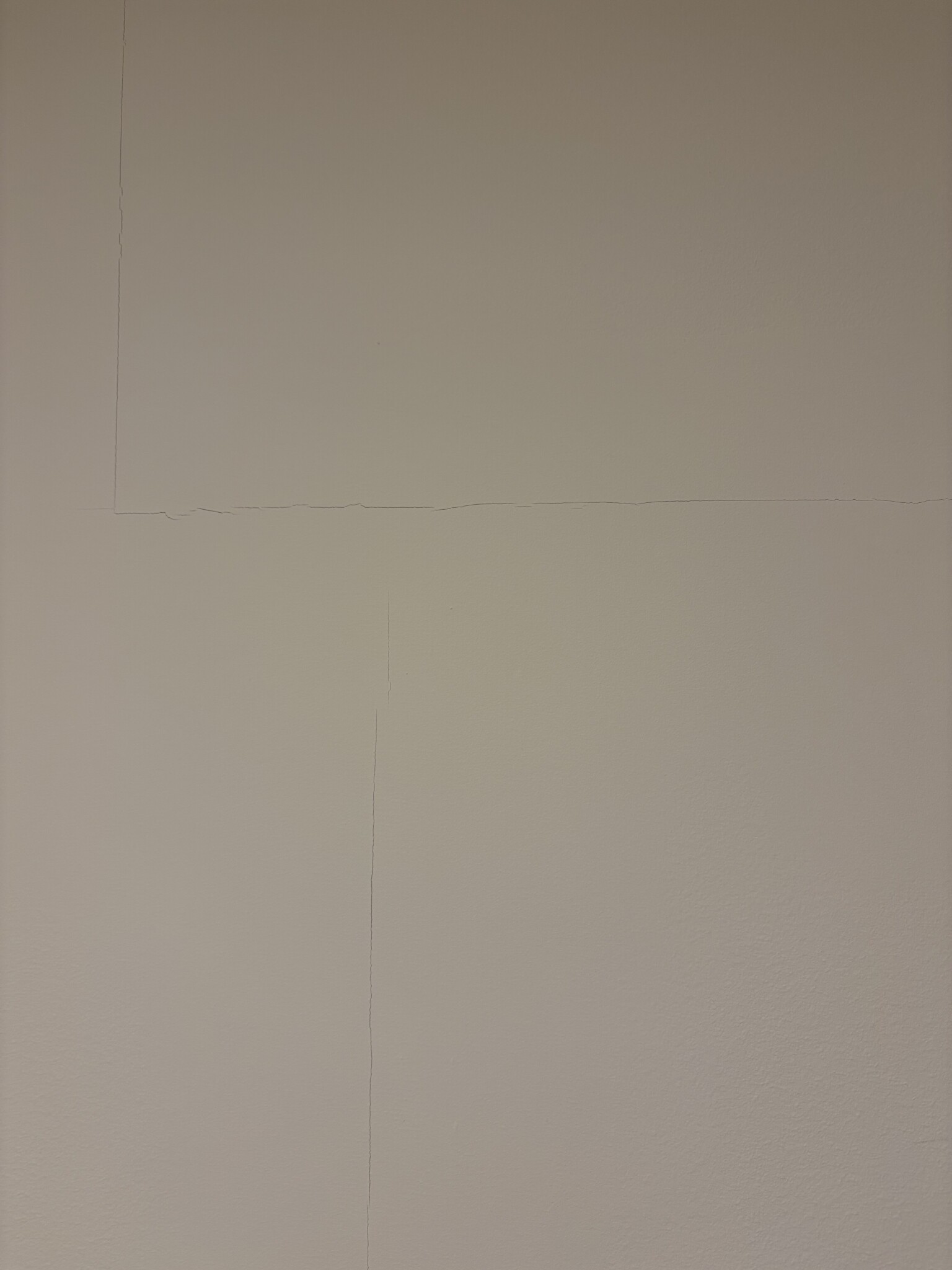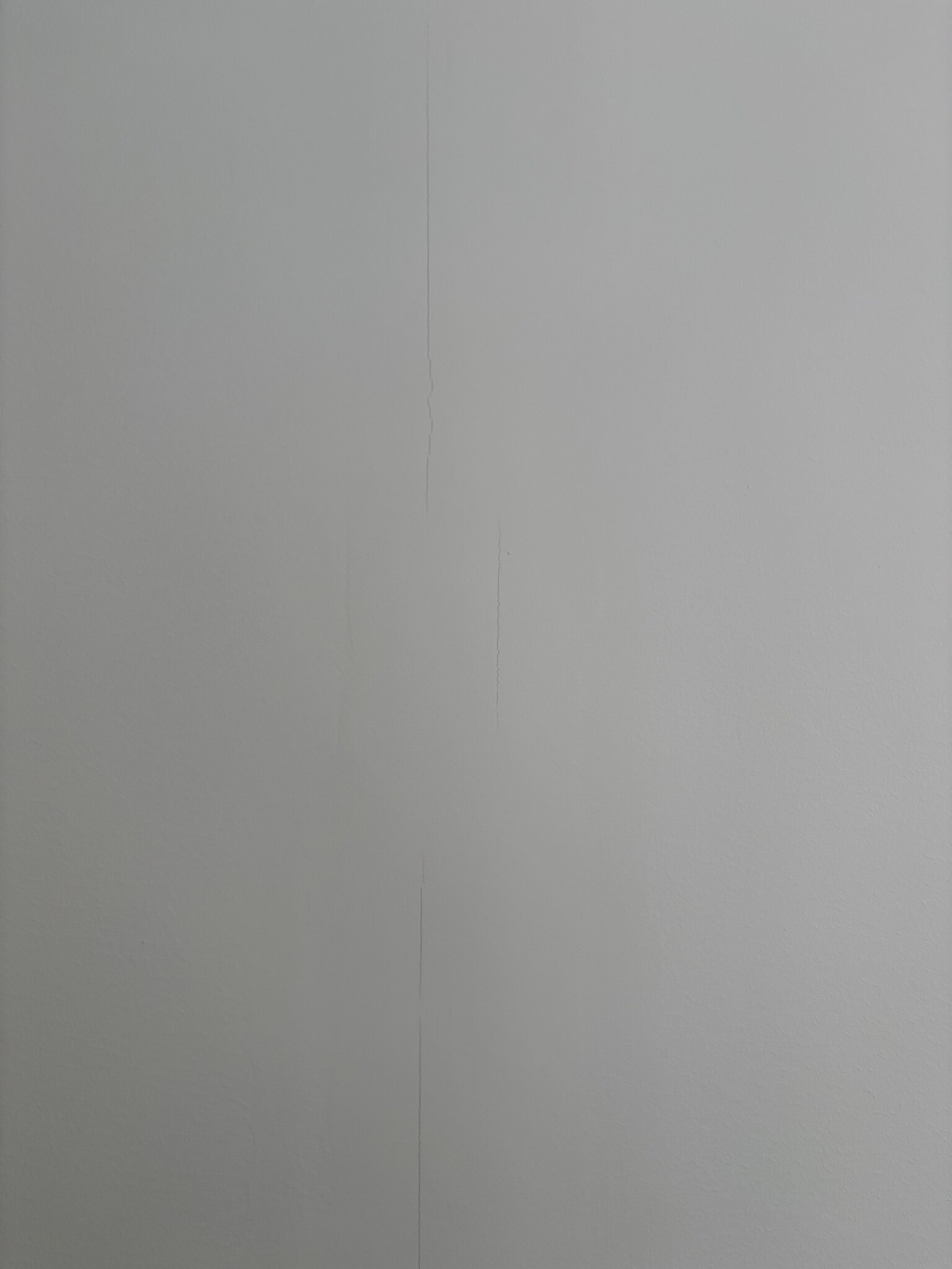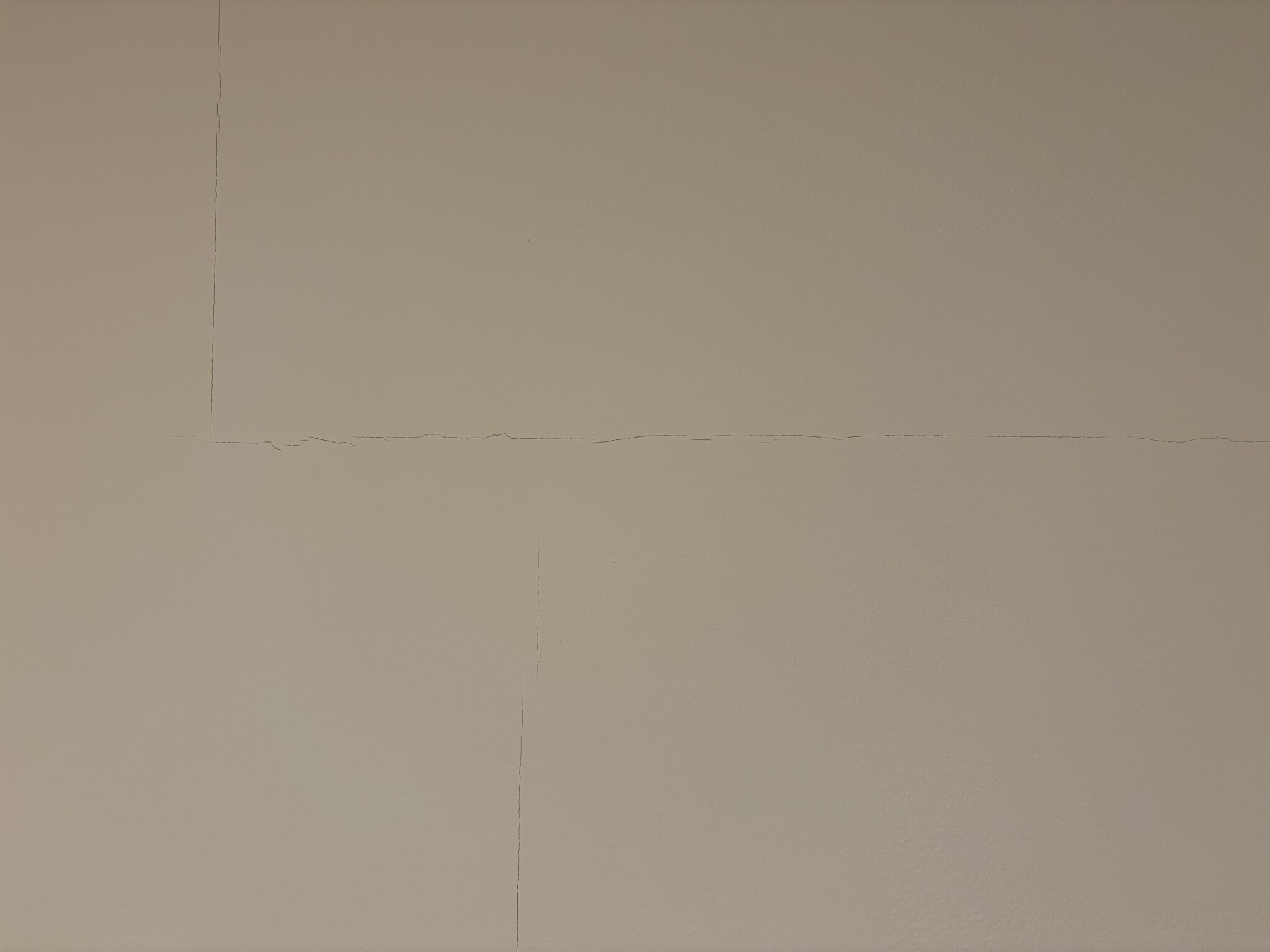 Sprickorna är ungefär 1 mm breda och följer ofta skarvarna mellan gipsskivorna, både lodrätt och vågrätt som bifogade.