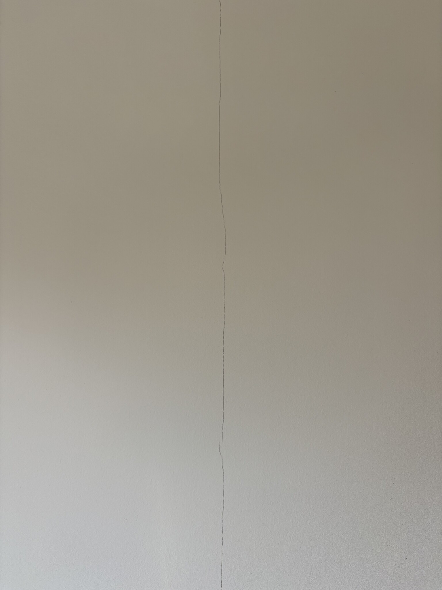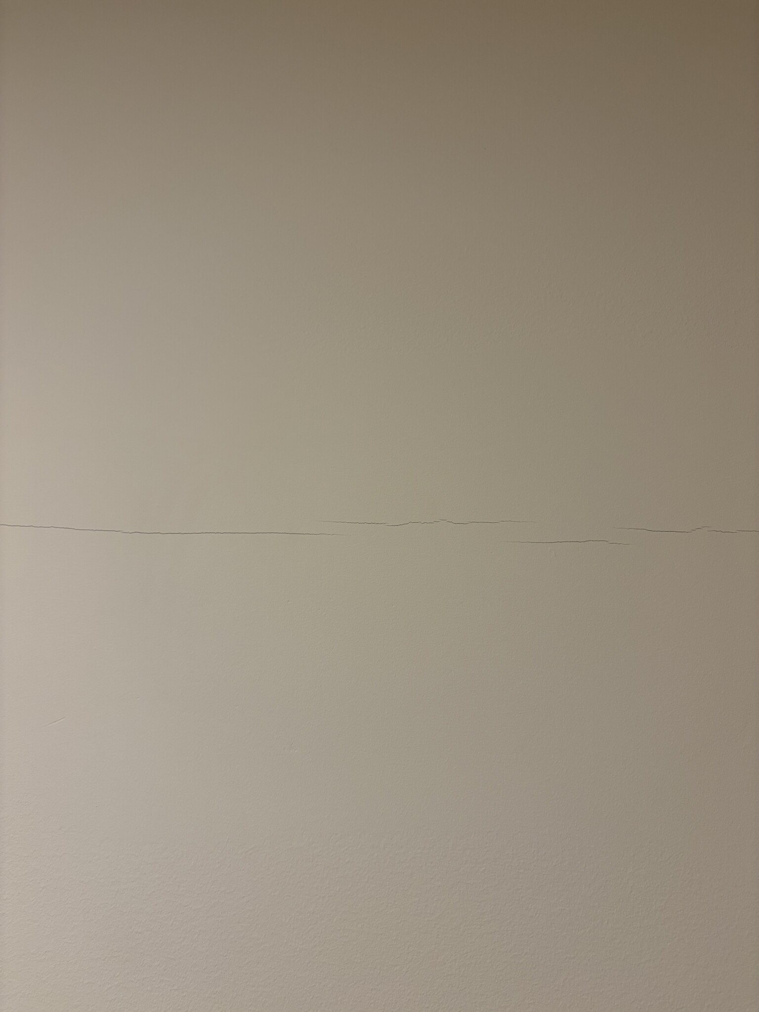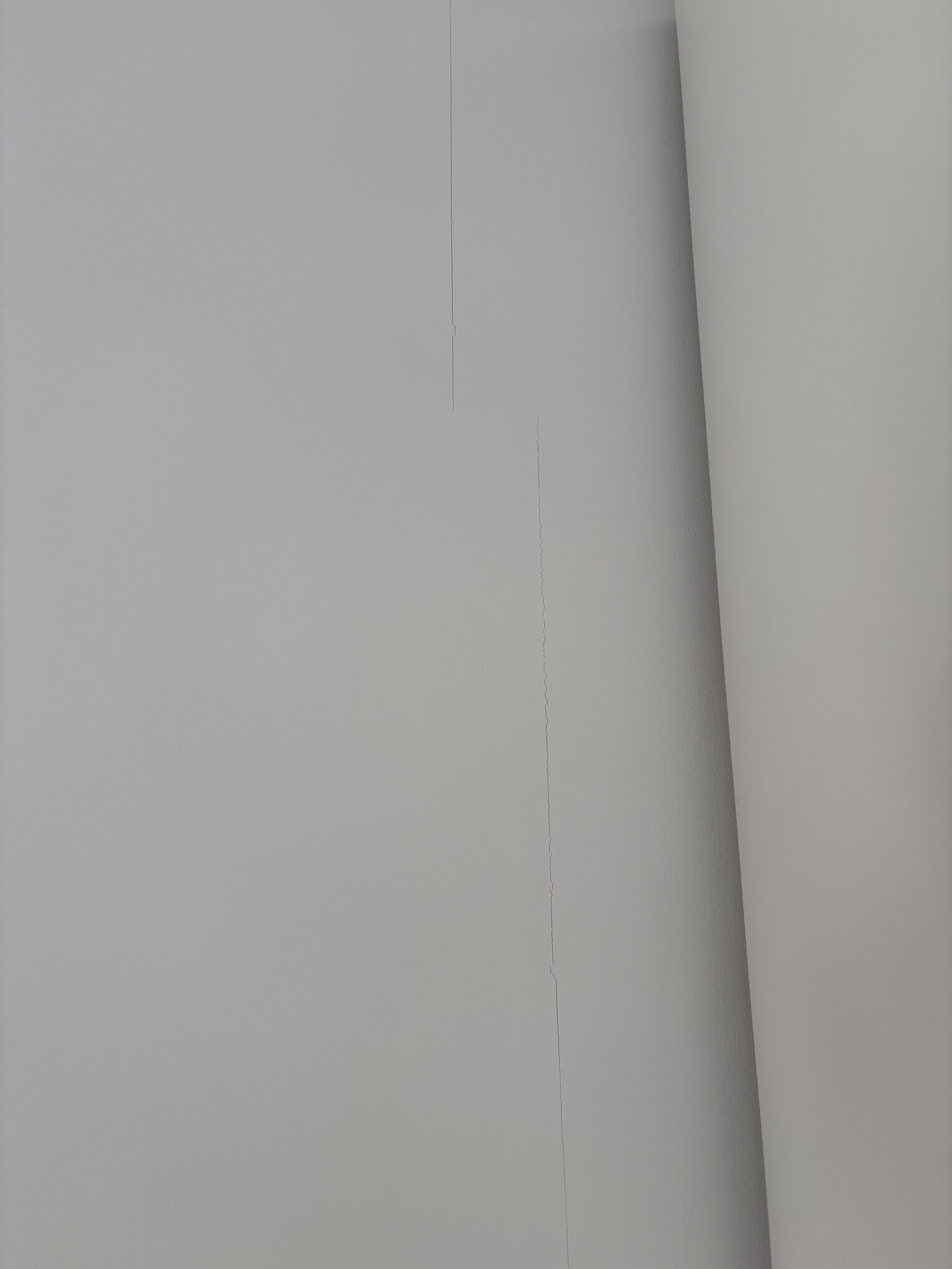 Sprickorna är ungefär 1 mm breda och följer ofta skarvarna mellan gipsskivorna, både lodrätt och vågrätt som bifogade.