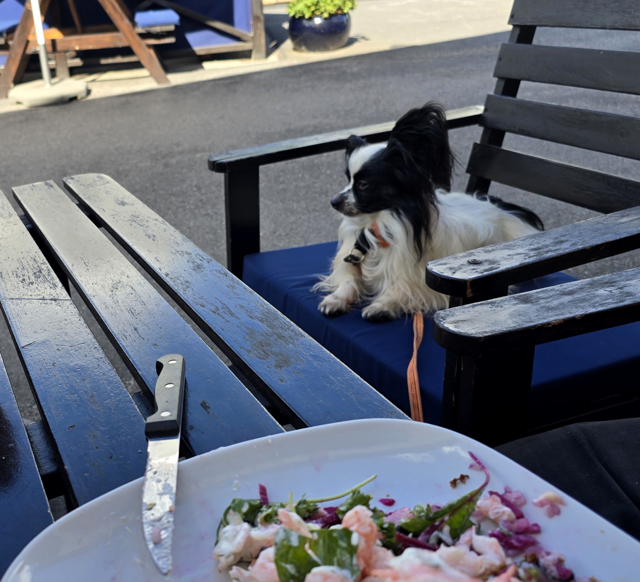 Åkte iväg och åt gott och satt å tittade på folk å hundar som gick förbi.