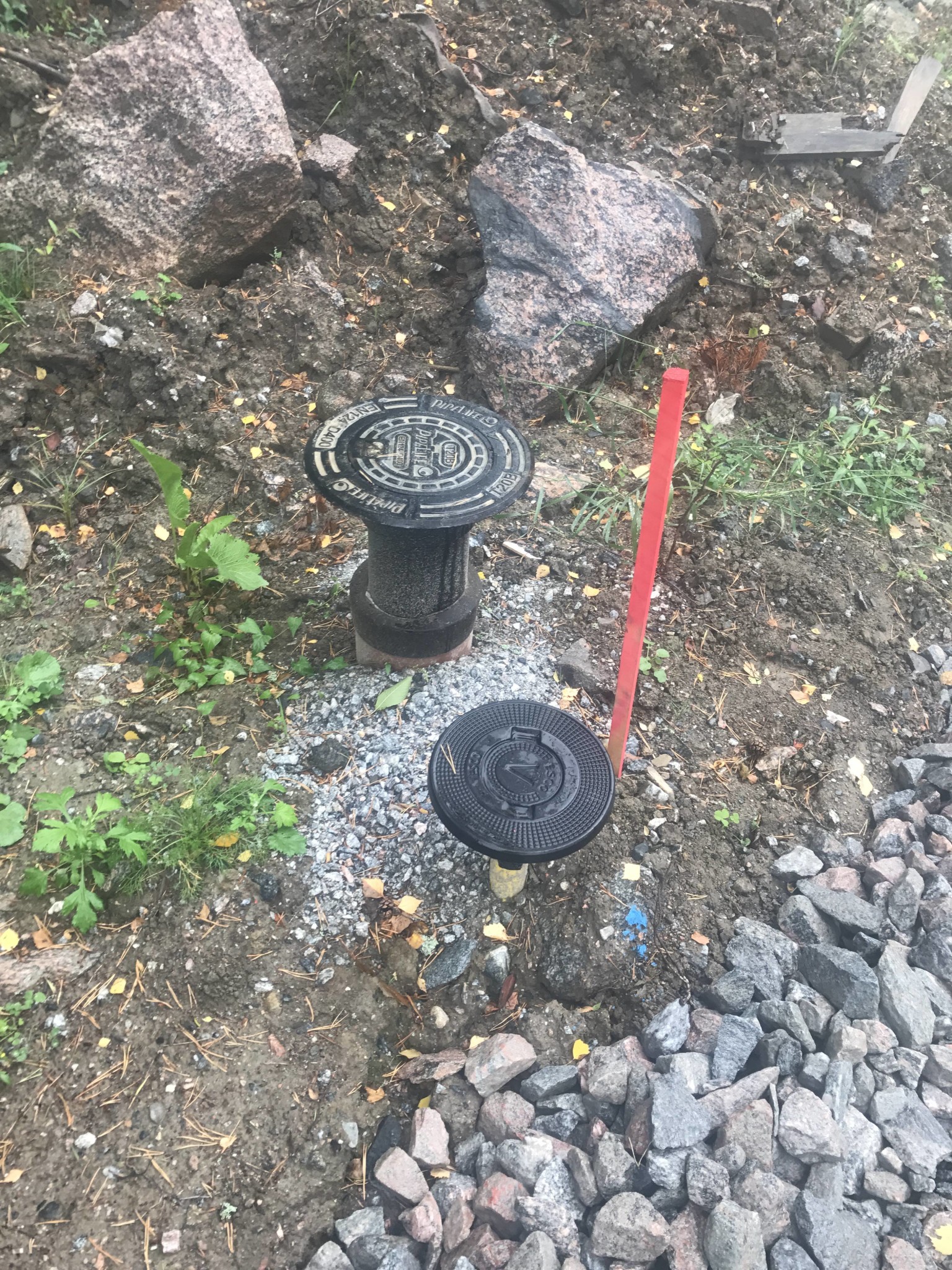 Mitt område håller på att få VA utbyggt. De har precis dragit in anslutningen på min tomt. På övriga tomter (där det ej finns några hus ännu) finns sådana här "lock" uppsatta.