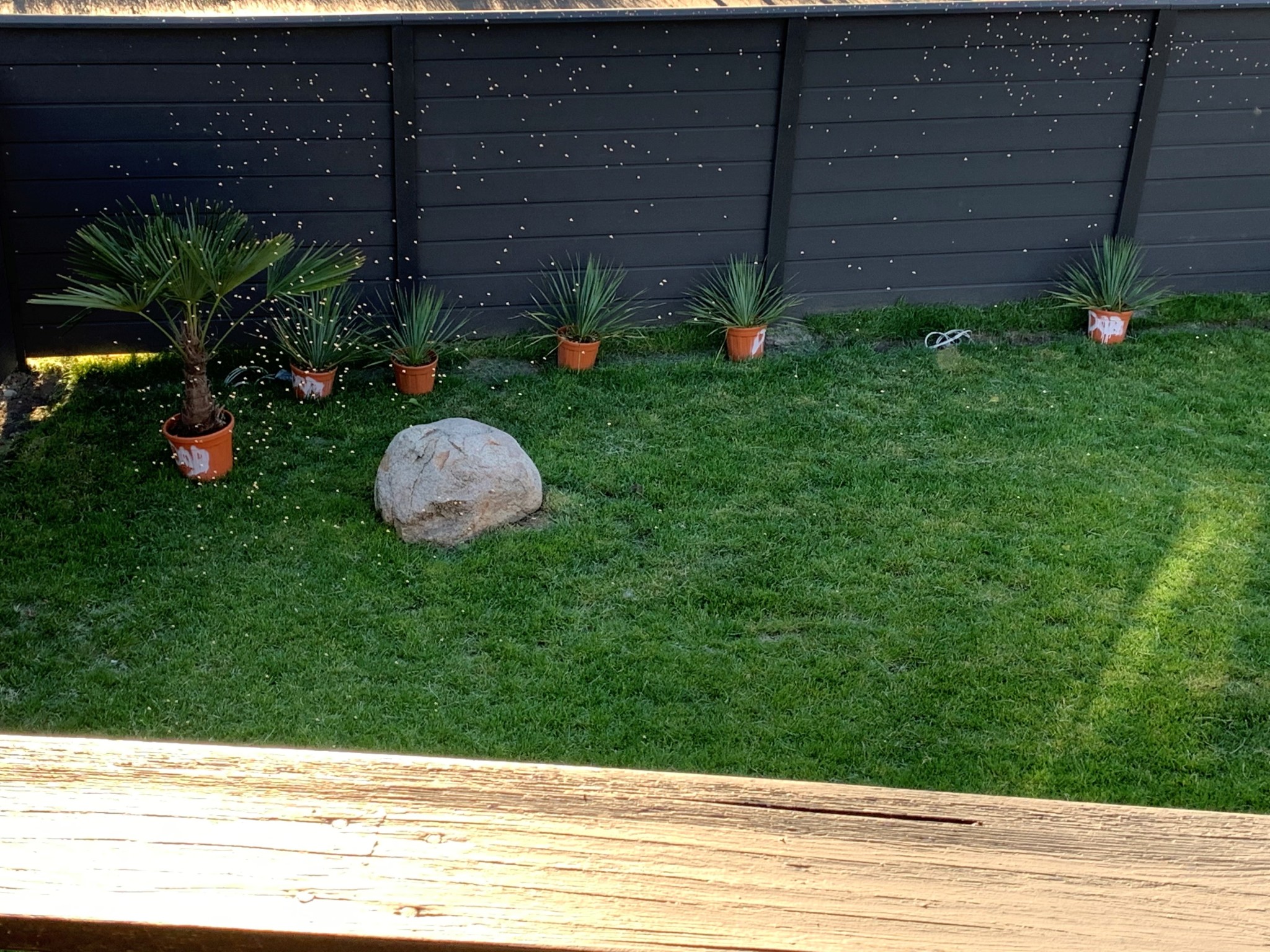 Jag vill tro att det är kopplat till vår gräsmatta på ngt vis men är inte säker. Ingen av våra grannar har detta problem. Vi har inte heller haft det tidigare, även om jag vill minnas att jag såg något enstaka moln även förra sommaren (innan vi anlade gräsmattan), men inte helt 100 på det. Sen har vi precis köpt några palmväxter och olivträn etc. från utlandet, om det kan vara så att de dragit med sig ngt skit.