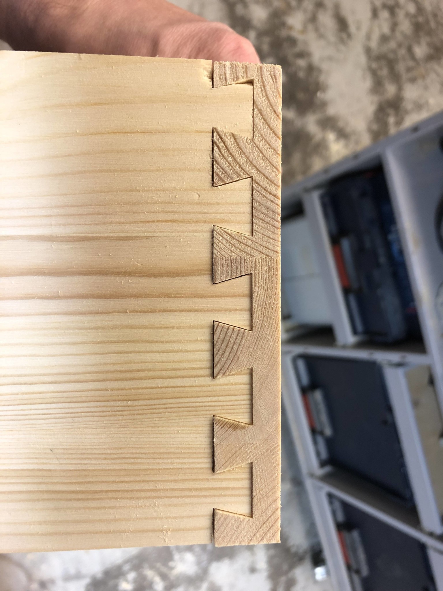 Mitt pågående projekt på skolan med fem lådor får något som jag inte minns vad läraren kallade det, men i min amerikanska bok kallas ”routed drawer lock joint”. Har jag tur kommer jag tycka om det så mycket att jag inte saknar sinkorna i mitt liv och slipper fundera mer.