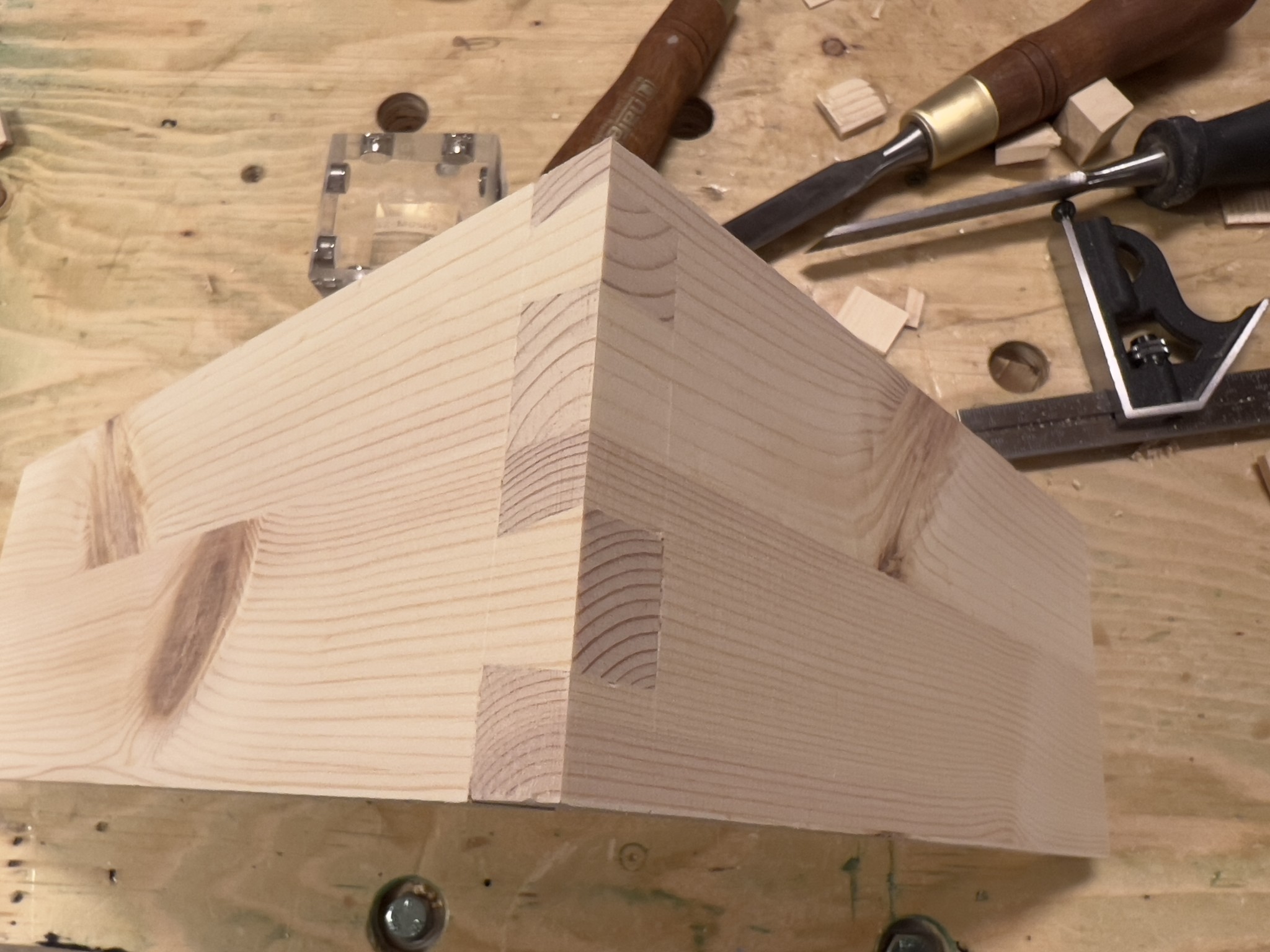 Nu har magnetjiggen kommit och testats. Eftersom jag inte har någon vettig markeringskniv tog det ett par misslyckade försök med att hantera pennstrecket, men efter det fick jag till sågningen riktigt bra. Fortfarande halvklantig med stämjärnen, men det är väl bara att öva på. Jag ger den här metoden ett tag innan jag funderar på något dyrare eller krångligare.