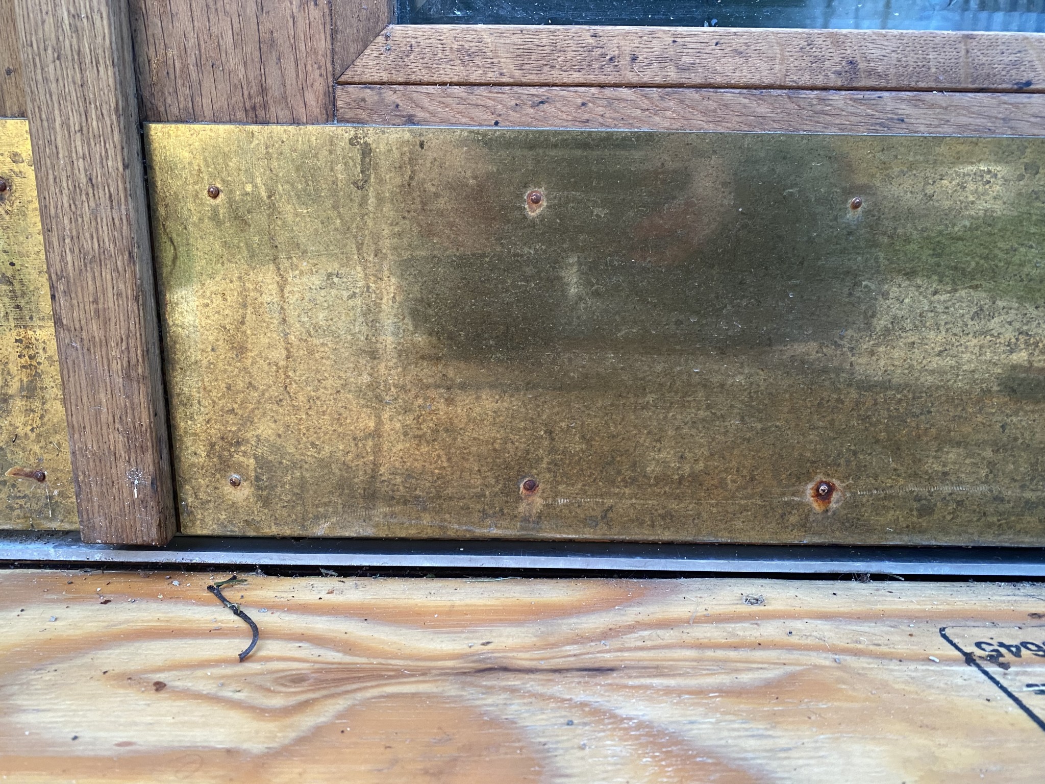 Det är nog stålspik som har fått ett tunt lager med mässing, fungerar inomhus men inte ute.