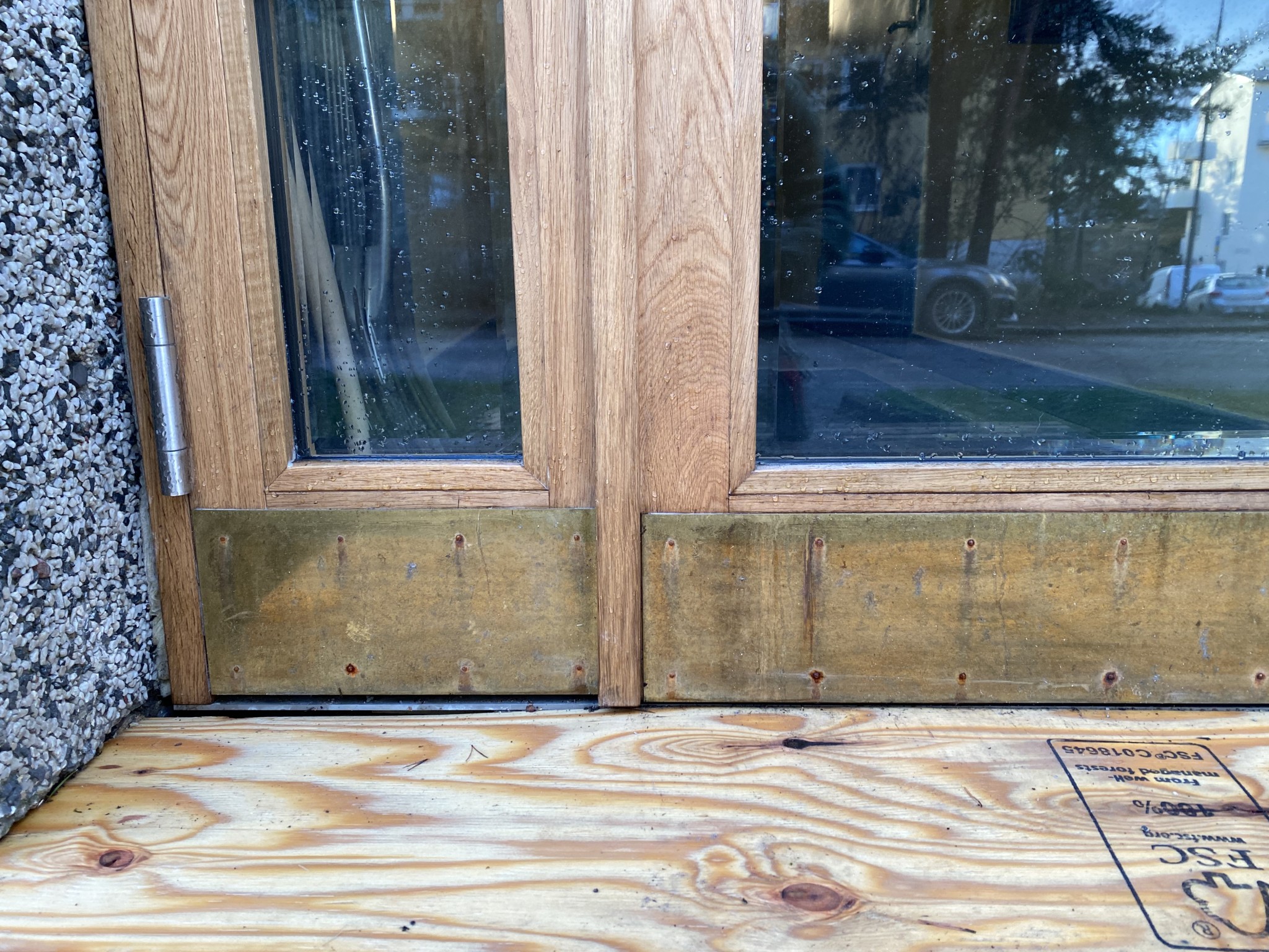 I vår BRF har vi precis fått nya portar installerade. Efter att ha suttit där i ca tre veckor ser man tydligt rost runt spikarna i sparkplåten.
