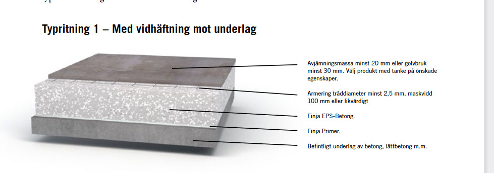 japp, fick samma svar från Kiilto, mkt bra. TackarM myrstack skrev:Samtliga byggbeskrivningar jag känner till med flytspackling alt slipsats på ett bärande underlag innebär ett klenare rotnät samt armering i underkant. Även med EPSCement är det normen. Har aldrig riktigt slagit mig att lyfta armeringen dels pga den onödigt ökande materialåtgången och dels pga att det är förmodligen otrevligt att brottas med en trilskande golvvärmeslang på en svag armeringsmatta som inte likt en 8150 eller liknande besegrar en stel golvärmeslang alla dagar i veckan. Så jag kör enligt instruktion och har aldrig råkat ut för sprickor